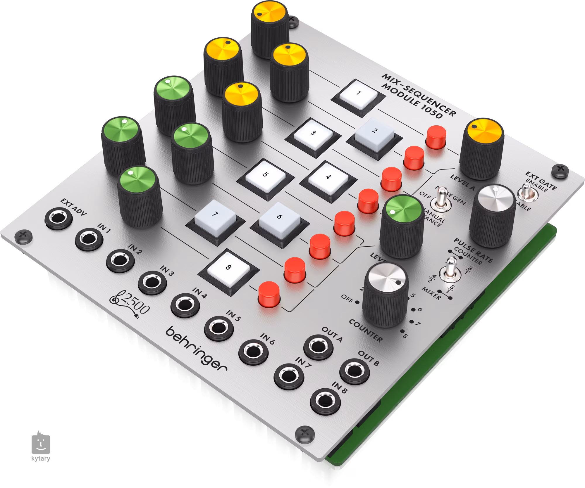 Das MIX-SEQUENCER MODULE 1050 von Behringer ist ein originalgetreuer Nachbau des "System 2500"-Systems aus den 1970er Jahren. Dieses Modul ist für den Einsatz in Eurorack-Systemen konzipiert und bietet dank der originalen Topologie einen authentischen analogen Klang. Das MIX-SEQUENCER MODULE 1050 ermöglicht die schnelle Auswahl von Signalen durch ein klassisches Mix-Format und fungiert als 8-Kanal-Mixer oder -Sequenzer, bei dem jeder Audio-Eingang über einen eigenen Abschwächer, Potentiometer und Ein/Aus-Schalter verfügt. Dieses Modul ermöglicht eine flexible Steuerung und Mischung von Signalen bei einfacher Bedienung. Bei der Verwendung als Sequenzer können Sie zwischen einem 8-Step- oder zwei 4-Step-Sequenzern wählen, was Ihnen maximale Flexibilität bei der Musikgestaltung bietet. Die Potentiometer sind außerdem durch zwei Farbgruppen unterschieden. Jeder Kanal verfügt außerdem über eine Exclusive-On-Taste, mit der Sie nur einen Kanal aktivieren und die anderen stummschalten können.