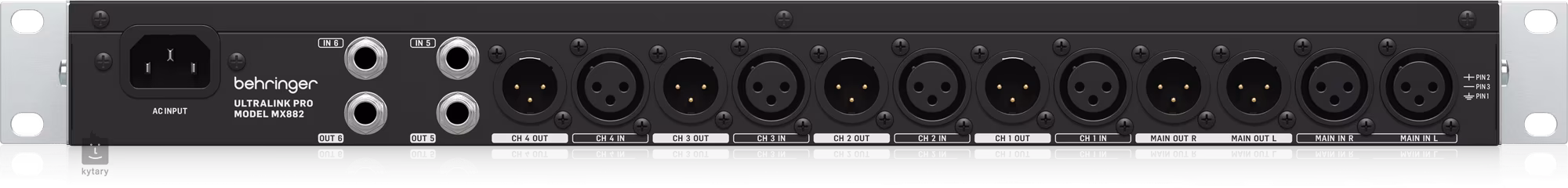 Der MX882 verfügt über 6 symmetrische Mono-Eingänge (4 x XLR, 2 x Klinke 6,3 mm) und 6 symmetrische Mono-Ausgänge (4 x XLR, 2 x Klinke 6,3 mm), 2 symmetrische Haupteingänge (XLR) und 2 symmetrische Hauptausgänge (XLR).