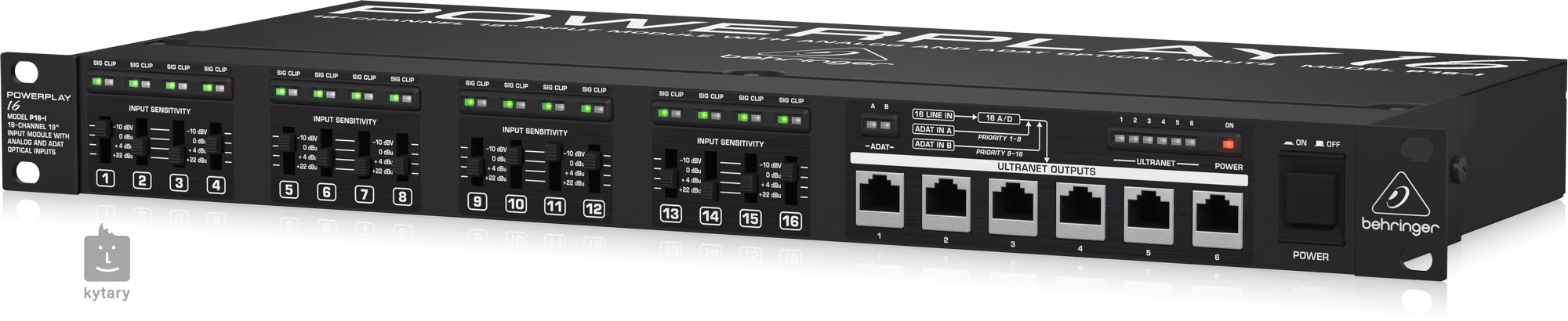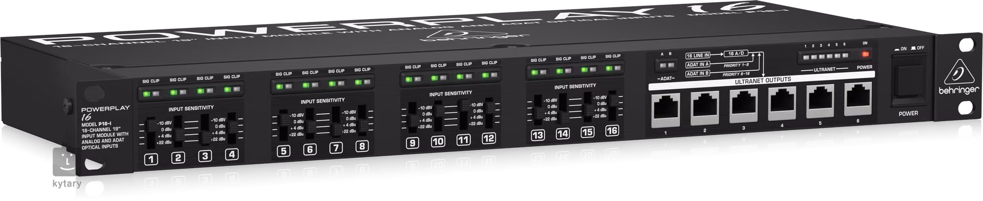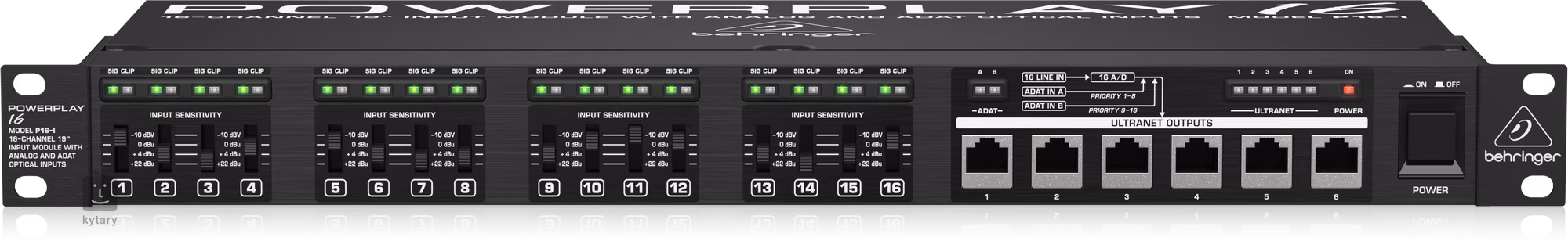 Das Behringer P16-I ist ein 16-Kanal-Modul mit analogen und optischen ADAT-Eingängen in einem 1U-Rackgehäuse.