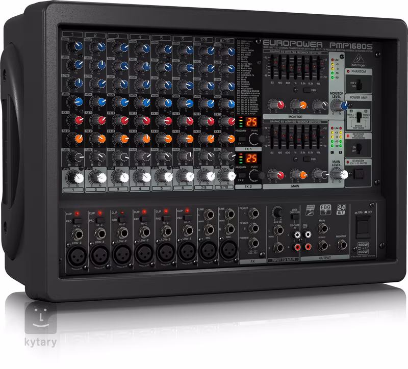 Der Behringer PMP1680S ist ein Mischpult mit Verstärker, zehn Kanälen, doppelter Effekteinheit und Rückkopplungsfrequenzerkennung. Der Verstärker der Klasse D bietet eine Leistung von 1600 W, sodass dieses Mischpult die ideale All-in-One-Lösung darstellt.