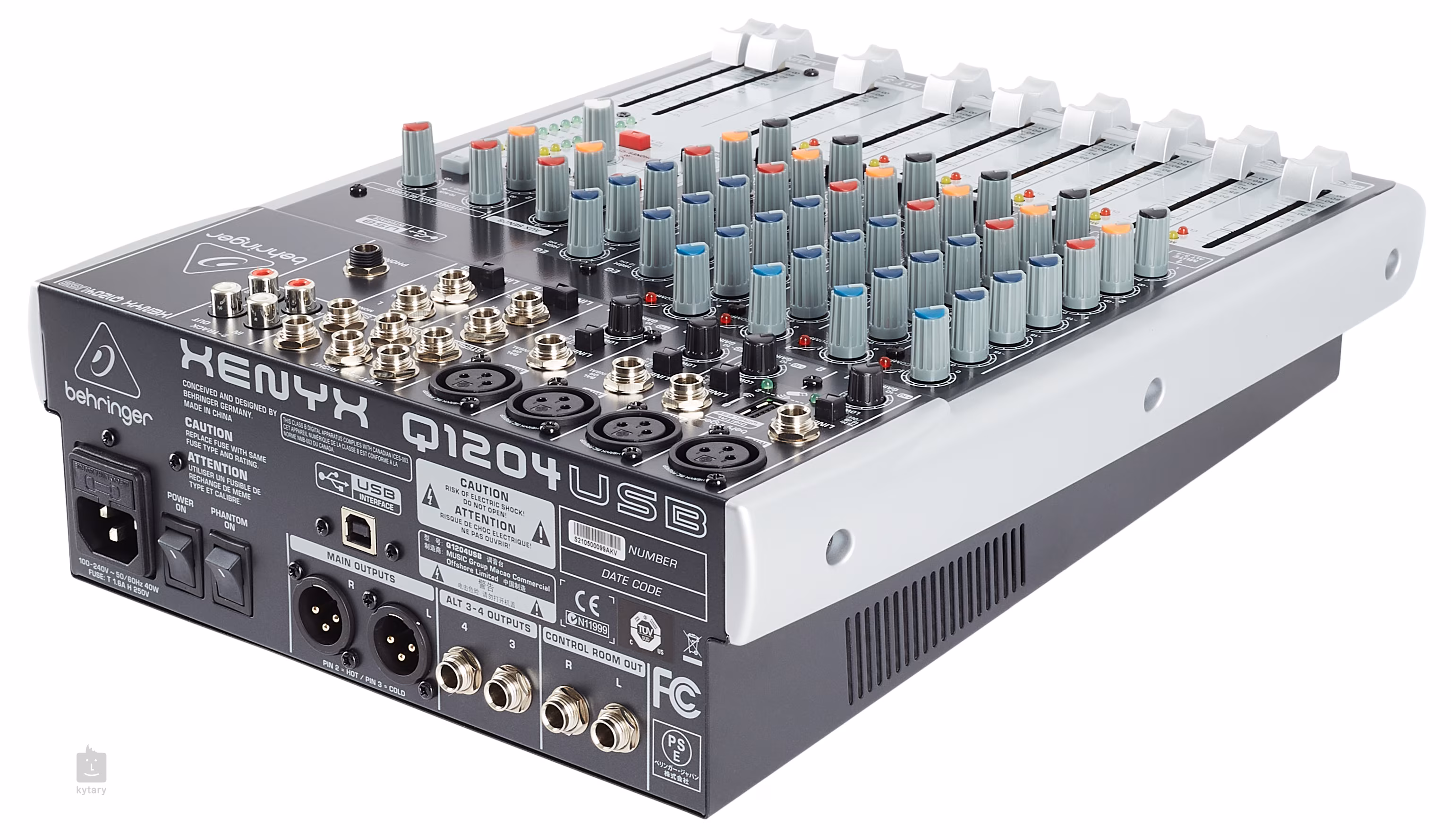 Das XENYX Q1204USB ist ein analoges Mischpult mit USB-Schnittstelle, integriertem Kompressor, zwei Subgruppen und zwei FX-Sends (Post und Pre) auf allen Kanälen. Für den Signaleingang stehen vier Mikrofon-/Line-Eingänge und zwei Stereokanäle zur Verfügung. Die Mikrofonkanäle verfügen über einen Kompressor zur Dynamiksteuerung, alle Kanäle haben eine 3-Band-Korrektur, 2x Send zur Anreicherung des Klangs mit externen Effekten oder für Monitoring-Zwecke, einen Panorama-Regler, einen Gain-Regler und eine Taste zur Zuordnung des Kanals zu einer Subgruppe.