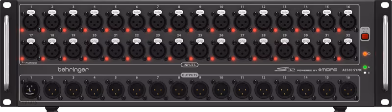 Der Behringer S32 ist eine digitale Stagebox, die insgesamt 32 hochwertige MIDAS-Vorverstärker bietet. Darüber hinaus stehen 16 Ausgänge oder AES50-Ports für die Vernetzung über die SuperMAC-Technologie (Klark Teknik) zur Verfügung.