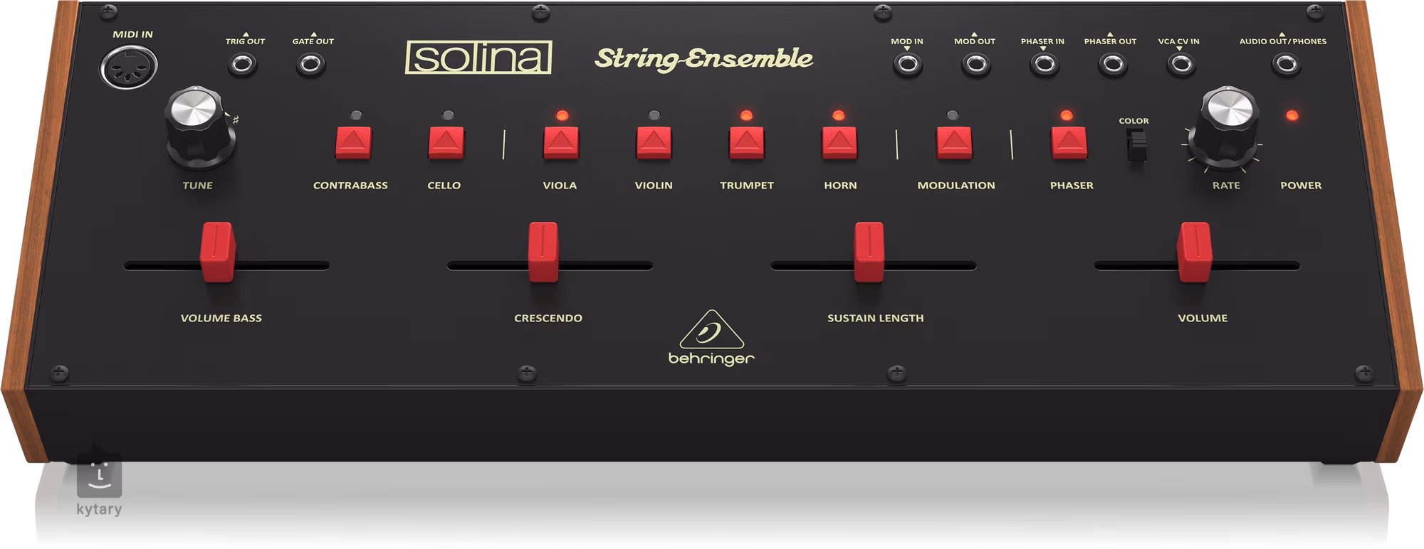 Der Nachbau eines klassischen Synthesizers ist immer eine große Aufgabe. Der Behringer SOLINA STRING ENSEMBLE ist ein solcher wiederbelebter Klassiker. Diese authentische Reproduktion des kultigen analogen Synthesizers ARP/Eminent Solina SE-II aus den 1970er Jahren bietet 49-stimmige Polyphonie und Instrumente wie Violine, Viola, Trompete + Horn, Cello und Kontrabass, einschließlich der traditionellen Regler für deren Stimmung - Crescendo, Bass und Lautstärke. Alles wie bei der historischen Revision B, allerdings in einem kompakteren Design, das Sie leicht in Ihr EURORACK-Setup integrieren oder allein verwenden können. Die Designer haben sogar einen analogen "Bucket Brigade"-Chorus integriert, der den originalen Modulationssound originalgetreu nachbildet, und darüber hinaus einen nachgebauten Small Stone-Phaser mit einem eigenen RATE-Regler.