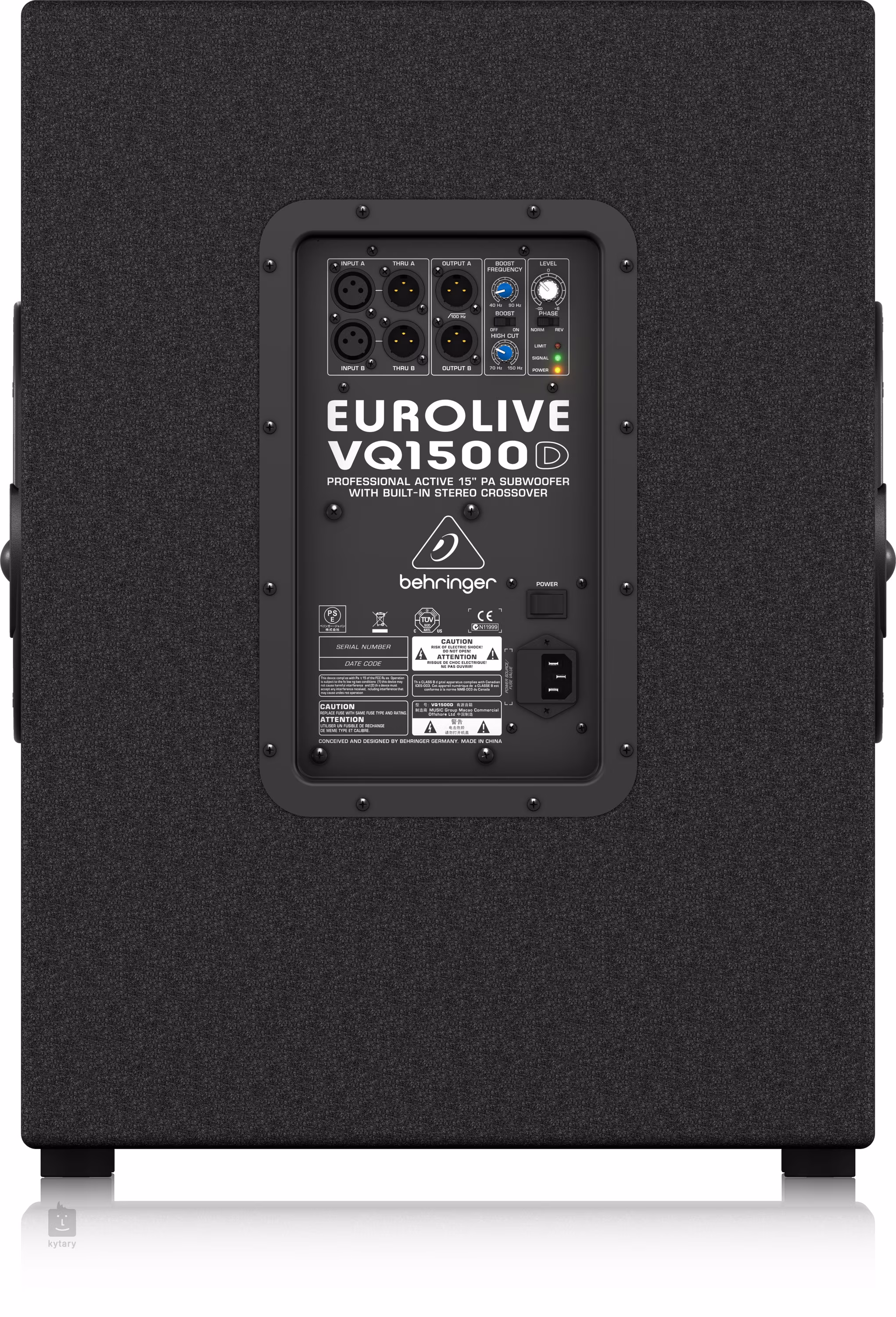 Im Inneren des robusten VQ1500D befindet sich ein 15-Zoll-Tieftöner, der für extrem saubere Bassfrequenzen sorgt und zusammen mit einem Class-D-Verstärker eine maximale Leistung von bis zu 500 W liefert. Das Hauptpanel verfügt über zwei XLR-Eingänge und THRU/OUTPUT-Ausgänge in Form von XLR-Anschlüssen für den Anschluss an ein PA-System. Außerdem gibt es Drehregler für die Lautstärkeregelung, die Bassanhebung und die Höhenbegrenzung. Zwei robuste Griffe sorgen dafür, dass Sie sie bequem und sicher zwischen den Produktionen transportieren können.