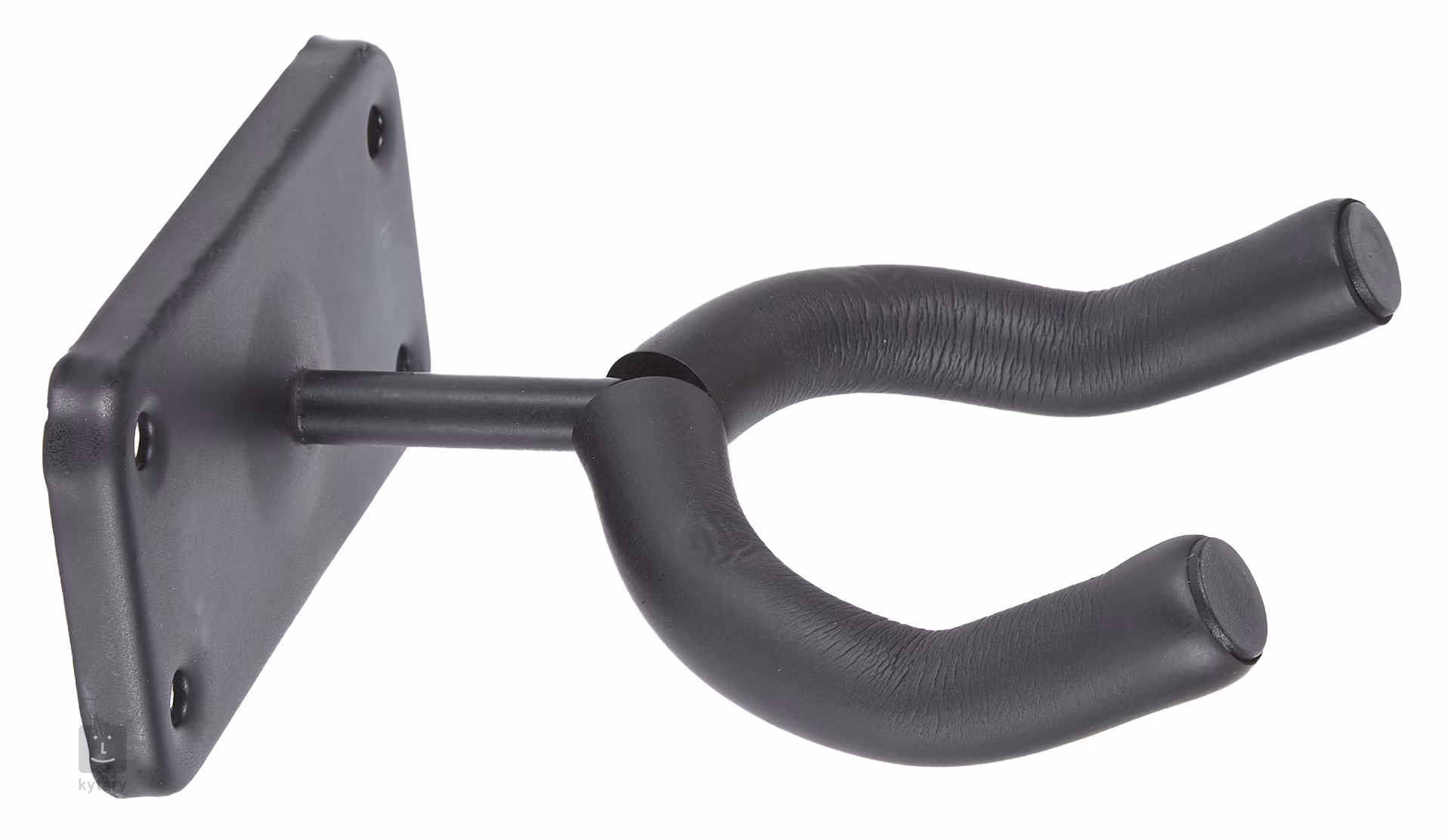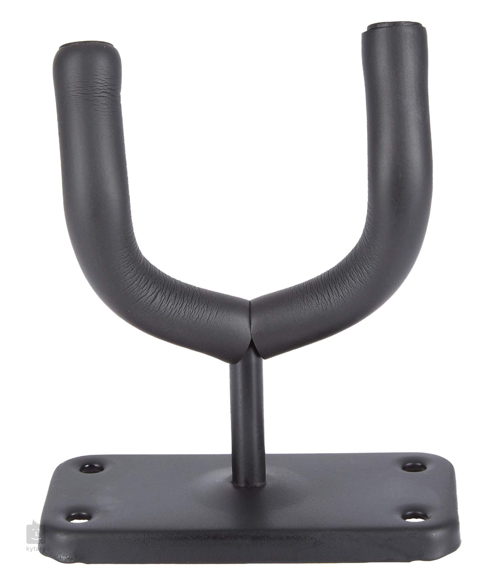 Gitarren-/Bassgitarrenständer mit stabilem Stahlfuß und 5 cm langem Arm. Die Kontaktpunkte sind mit einer Beschichtung aus Naturkautschuk versehen, um Kratzer am Instrument zu vermeiden. Das Paket enthält Dübel und Schrauben für die Montage in Gipskartonplatten.