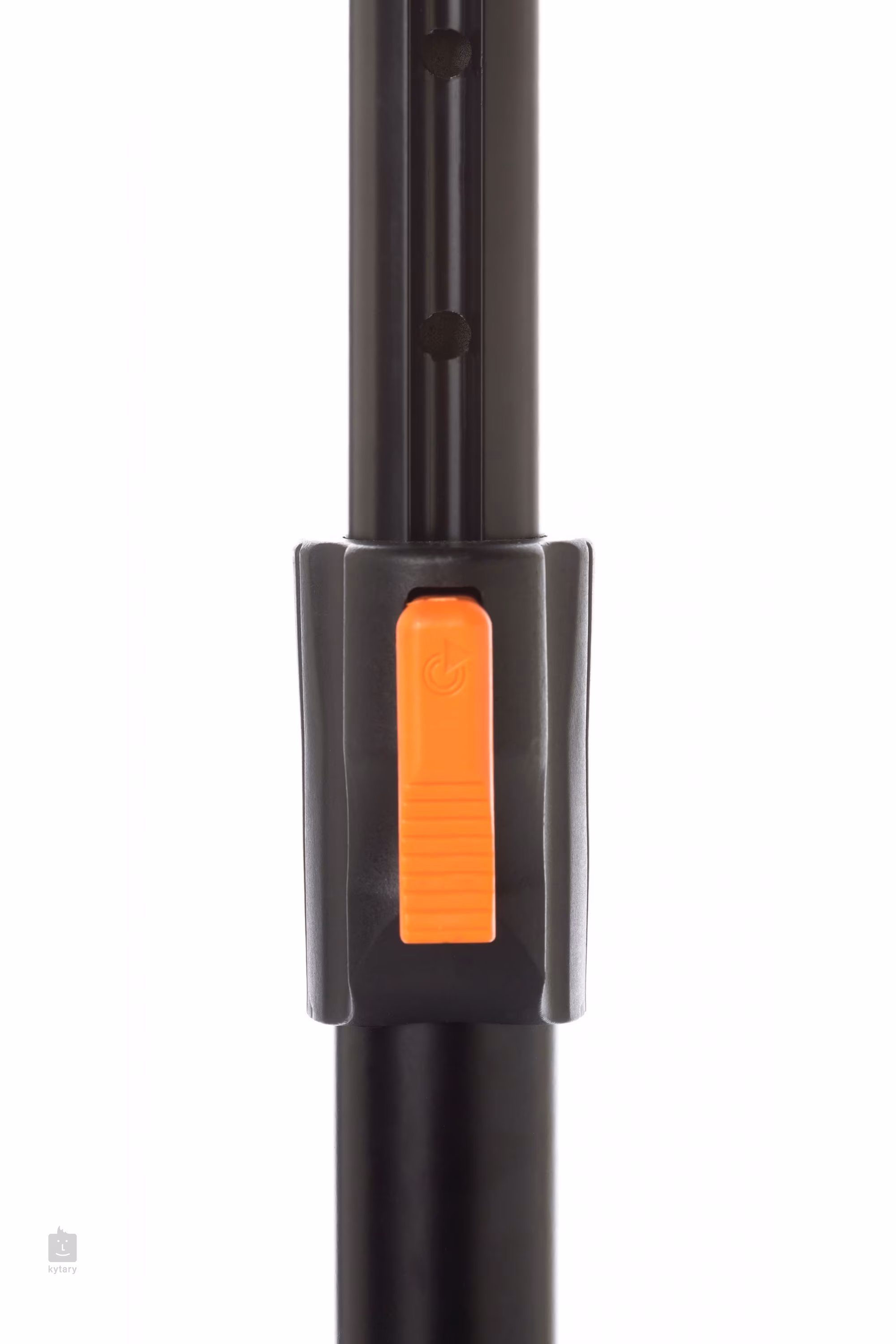 Professioneller Studiomonitorständer mit einstellbarer Höhe. Er ist aus robustem Stahl gefertigt und der Boden ist mit rutschfestem Gummi beschichtet. Der Standfuß hat eine Größe von 230 x 230 mm.