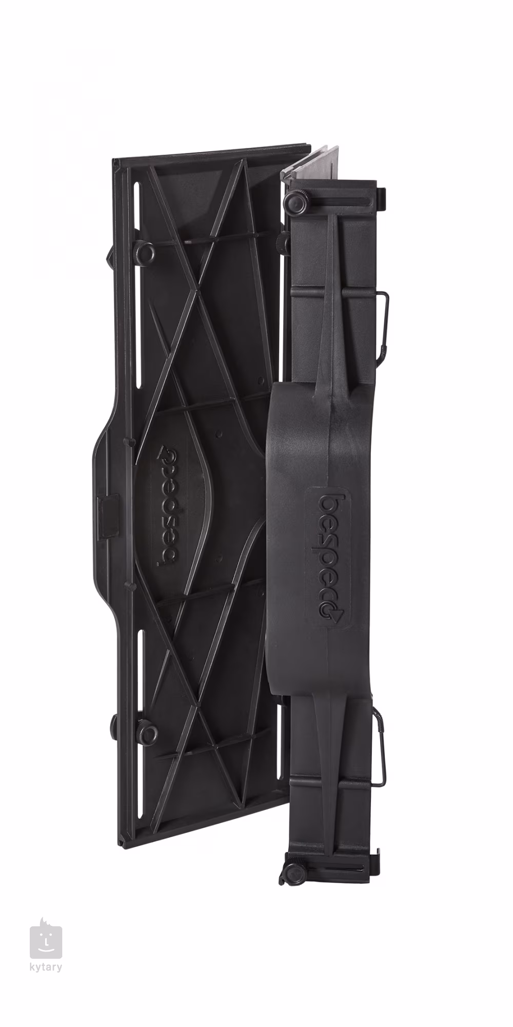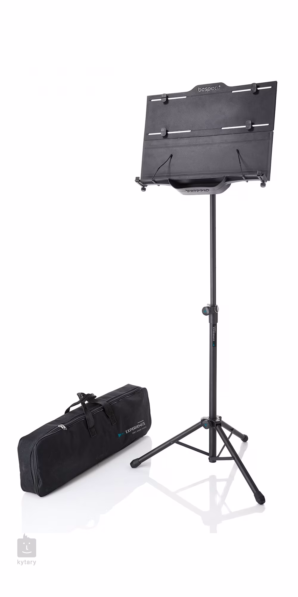 PX1 ist ein multifunktionales, faltbares Notenpult von Bespeco mit einem Dreibeinfuß und einer verstellbaren Höhe von 72 bis 124 cm. Das aus ABS-Kunststoff gefertigte Notenpult kann aus dem Ständer herausgenommen oder zusammengeklappt werden, und die Neigung des Notenpults kann mit dem CROCODILE-System eingestellt werden. Dank der Festigkeit, Stabilität und Flexibilität der Befestigung kann das Notenpult flach als Tisch oder Ablagefläche für Laptops, Tablets und andere Geräte mit einem Maximalgewicht von 8 kg verwendet werden, die zudem mit vier Anschlägen fest am Pult fixiert werden können. Der Notenständer bietet außerdem Platz für die Aufbewahrung von Kleinteilen und zwei seitliche, ausziehbare Halterungen für Kopfhörer, Schleifen und anderes Zubehör.
