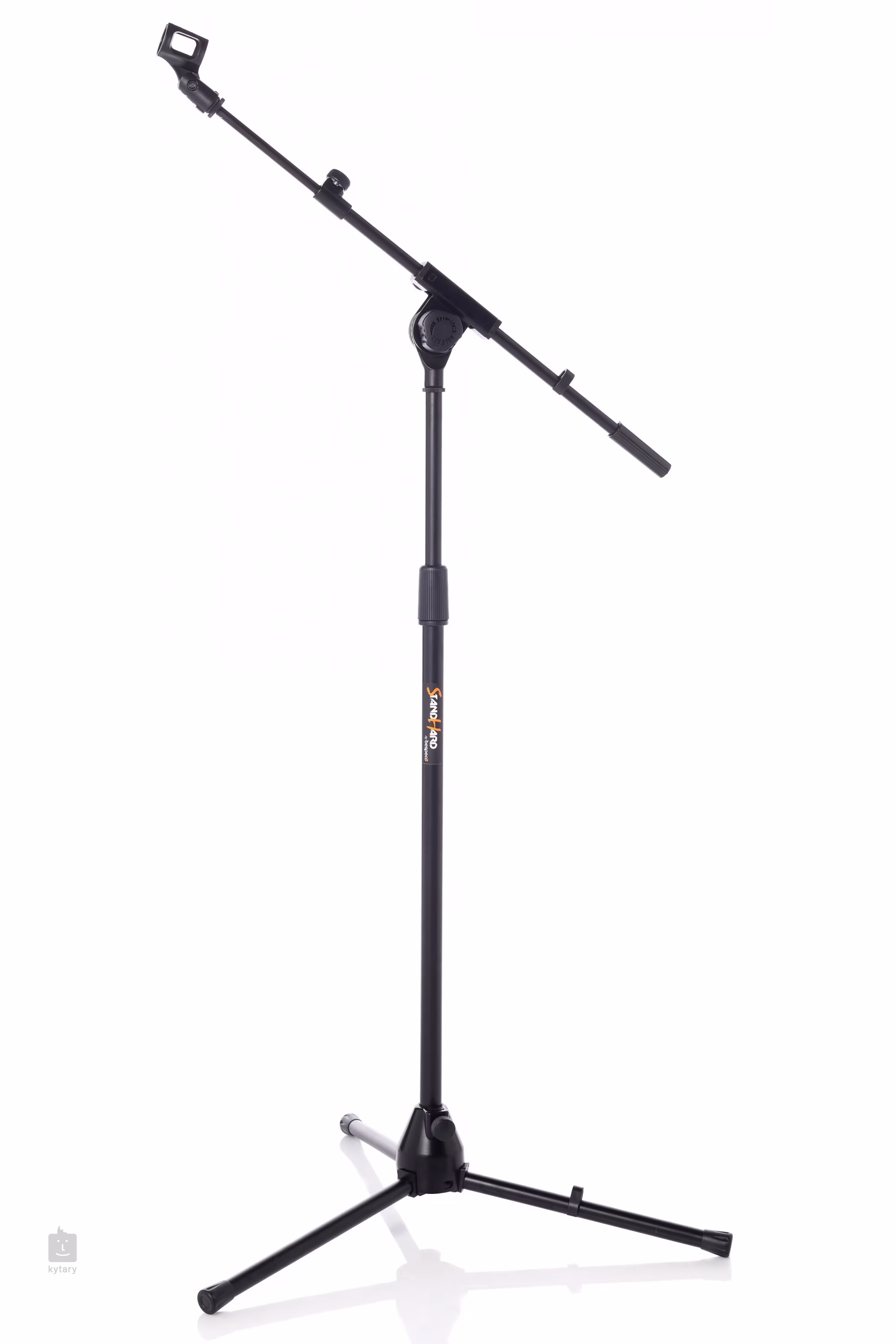 Mikrofonständer mit Teleskoparm, geeignet für alle Arten von Mikrofonen. Die robuste Metallkonstruktion mit einem stabilen Scharnier an der Unterseite sorgt für maximale Stabilität des Ständers, während die gummierten Materialien Bodenstöße oder durch Bassfrequenzen verursachte Vibrationen dämpfen. Die Höhen- und Neigungsverstellung kann mit drei Gewinden gesichert werden. Ein hochwertiger Mikrofonhalter aus Kunststoff ist im Lieferumfang enthalten.