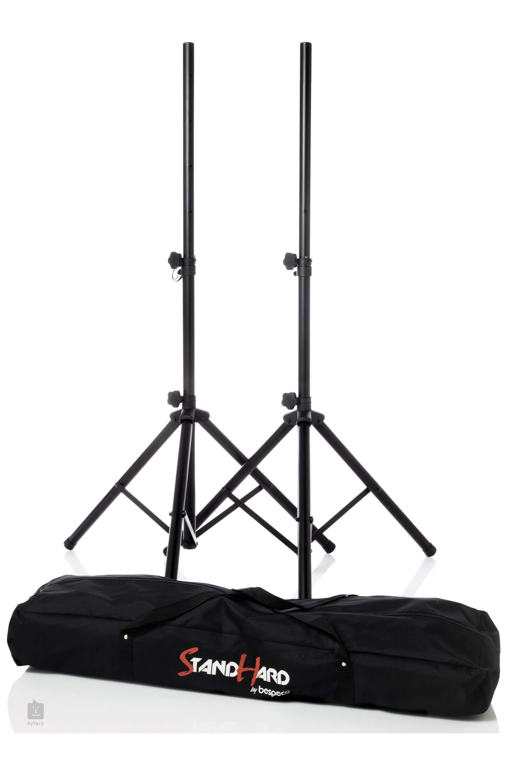 Satz mit zwei stabilen Stahlständern für Lautsprecher. Inklusive einer hochwertigen Nylontasche für den sicheren Transport.