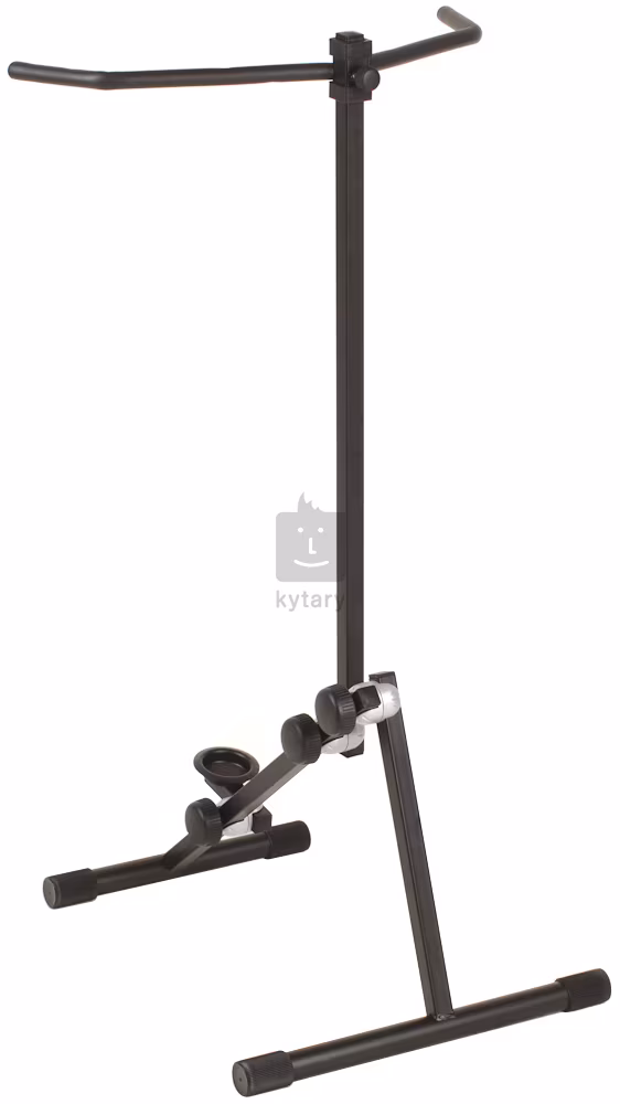 Professioneller Kontrabass-Ständer mit einstellbarer Höhe und Neigung. Die Kontaktstellen sind mit einem schützenden Naturkautschuküberzug versehen.