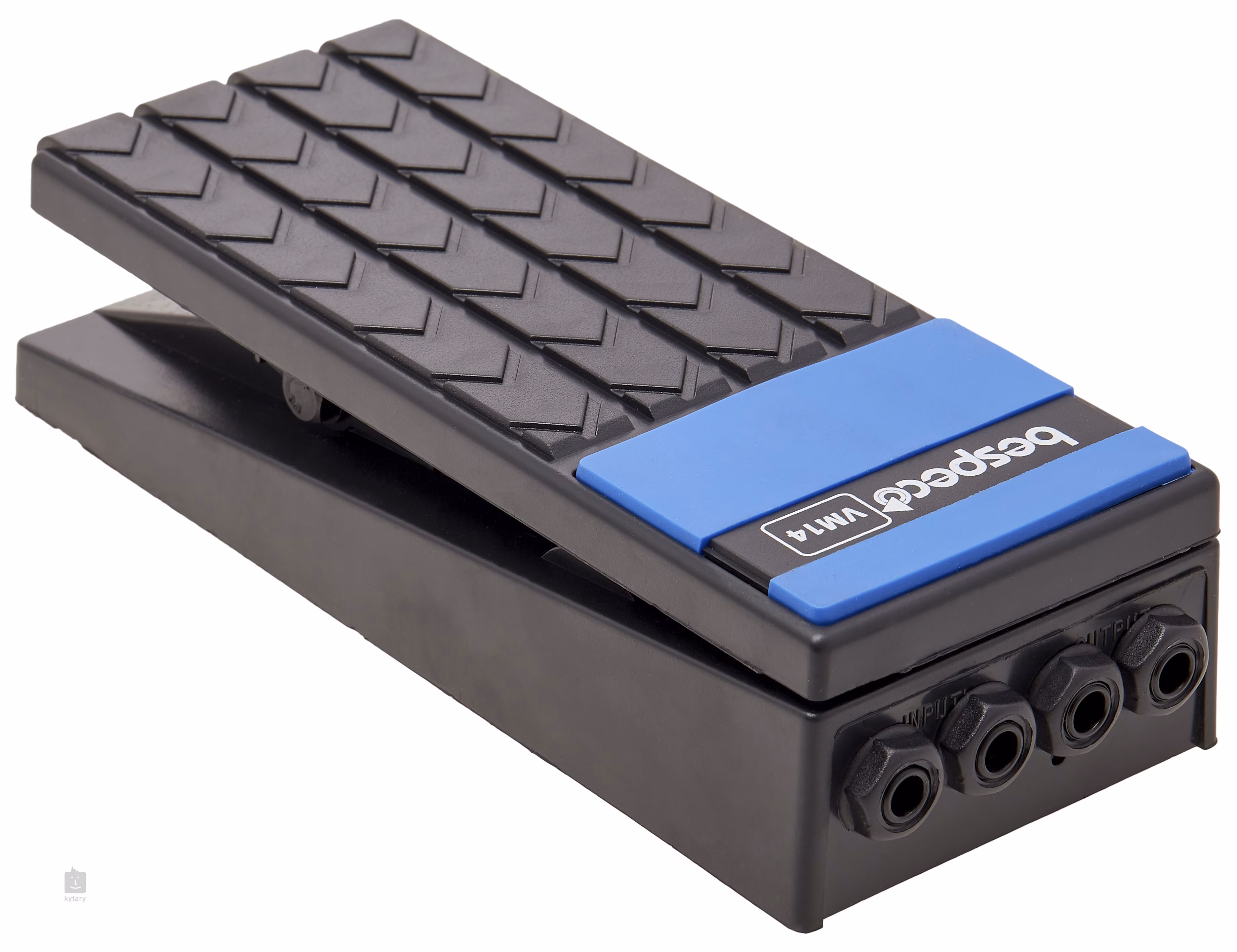 Volume-Pedal der italienischen Firma Bespeco in der Version ohne Kabel. Es hat ein Paar von Anschlüssen für die Stereo-Verbindung und einstellbare Verstärkung Ebene. Es besteht aus einer Kombination aus haltbarem ABS-Kunststoff und einer abgeschirmten Stahlbasis mit gummierten Füßen. Widerstand 100 kOhm.