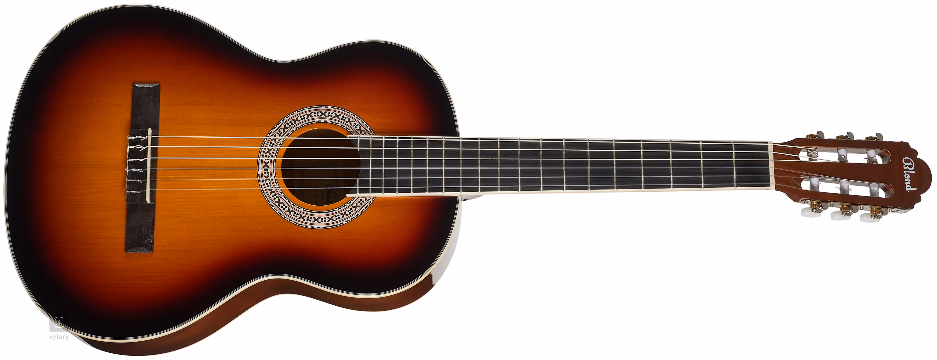 Die Blond OC-44 SB Konzertgitarre in 4/4 Größe bietet einen Korpus aus laminierter Fichte und Linde, einen Hals aus Okoumé-Holz sowie ein Griffbrett und eine Kopfplatte aus modernem Verbundmaterial. Die Saiten sind in klassischen verchromten Mechaniken mit weißen Wirbeln über einem Kunststoff-Nullbund aufgezogen. Das stilvolle Finish wird durch den aufgetragenen Glanzlack, das Sunburst-Finish auf dem Resonanzboden und die traditionellen Elemente in Form von Zierrosette und Kunststoffzierleiste (ABS) akzentuiert.