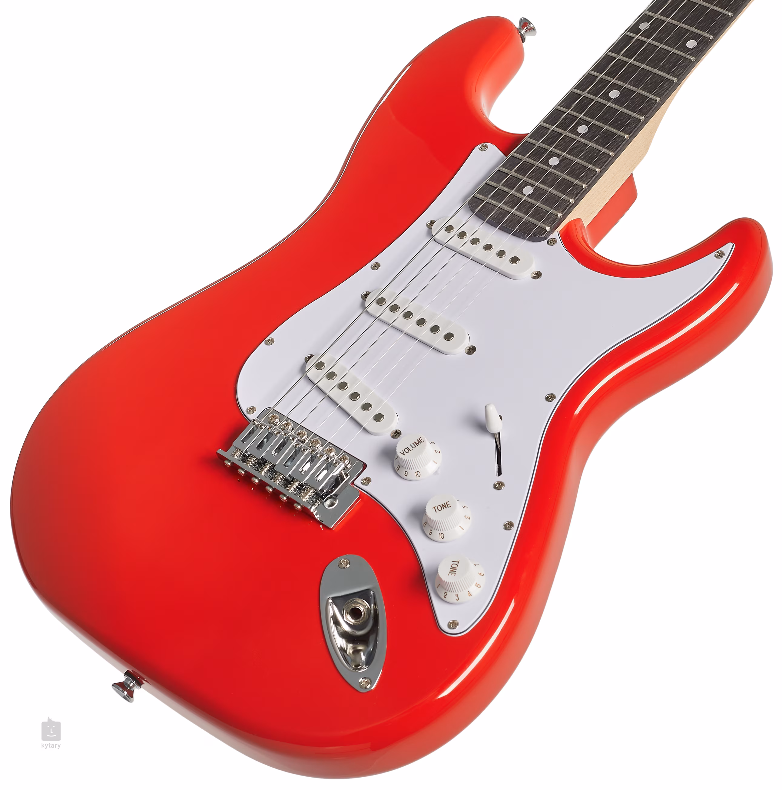 Der Korpus der Gitarre ist aus Pappelholz gefertigt. Auf den Ahornhals mit einem schönen Modern C-Profil ist ein Roseacer-Griffbrett aus wärmebehandeltem Ahorn mit Palisander-Finish geklebt. Drei Singlecoil-Tonabnehmer verleihen der Gitarre den klassischen, treibenden Sound der ST-Modelle. Sein Charakter lässt sich mit den Reglern für Tonblende, Lautstärke und Pickup-Schalter einstellen.