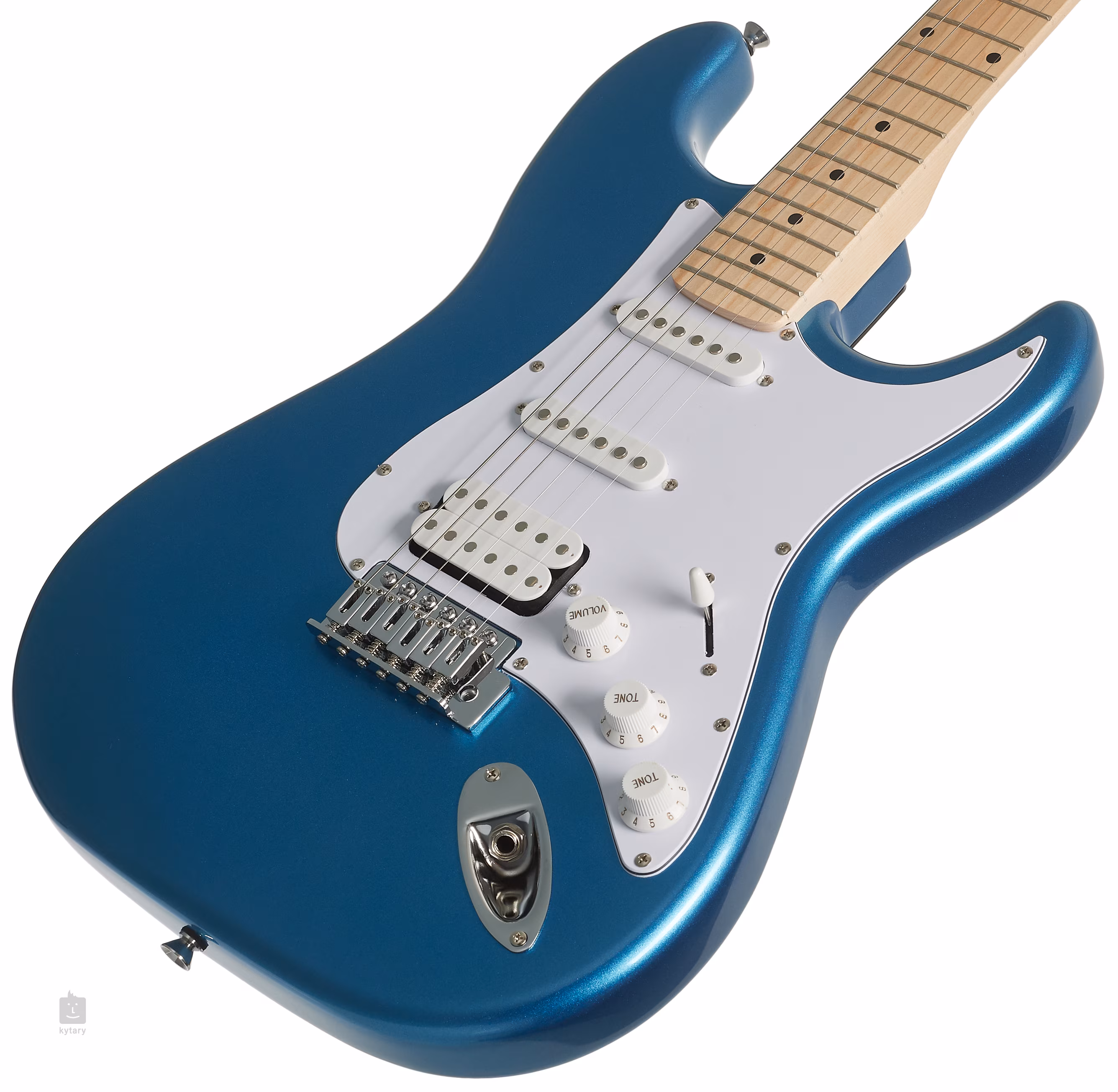 Der Korpus der Gitarre ist aus Pappelholz gefertigt. Ein Ahornhals mit einem schönen modernen C-Profil ist auf ein Ahorn-Griffbrett geleimt. Die Kombination aus einem Grashüpfer-Humbucker und zwei Singlecoil-Tonabnehmern im ST-Stil verleiht der Gitarre sowohl die klassischen Clean-Sounds und den Drive/Crunch der Singlecoils als auch den vollen Rocksound der Humbucker. Der Charakter der Gitarre lässt sich mit den Reglern für Tonblende, Lautstärke und Pickup-Schalter einstellen.