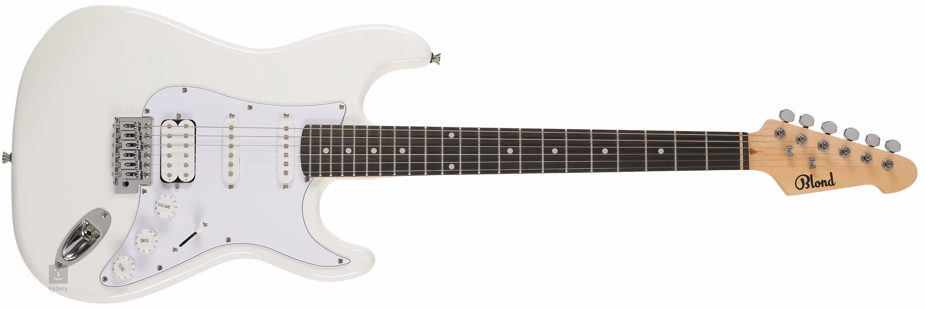 Die Blond STR-1H WH E-Gitarre ist die ideale Wahl für aufstrebende Rocker und Rockerinnen. Es handelt sich um ein Instrument mit einer traditionellen ST-Form und allen Merkmalen, die man mit diesem Gitarrentyp verbindet - von den Tonabnehmern über das synchronisierte Tremolo bis hin zum Schlagbrett.