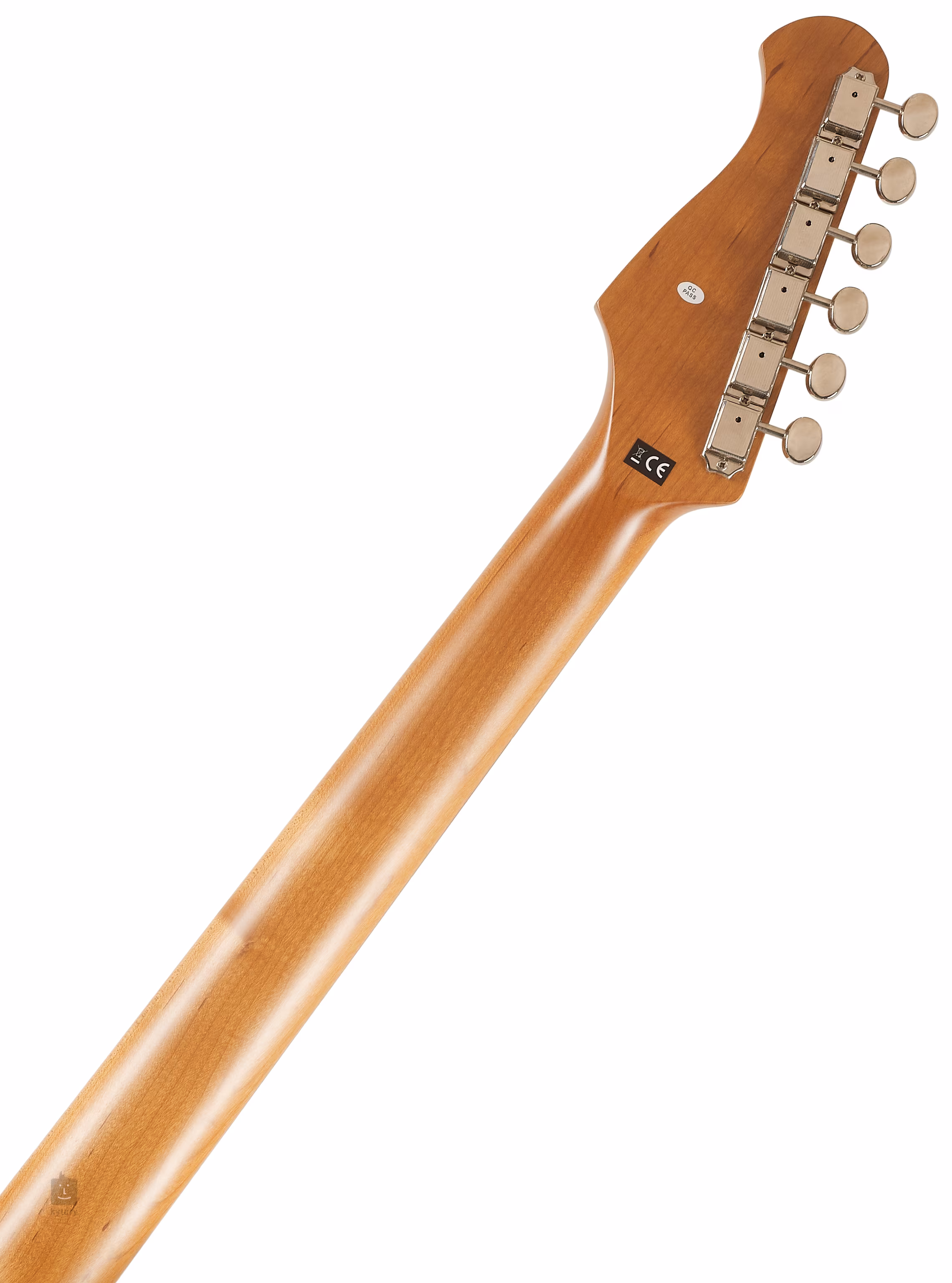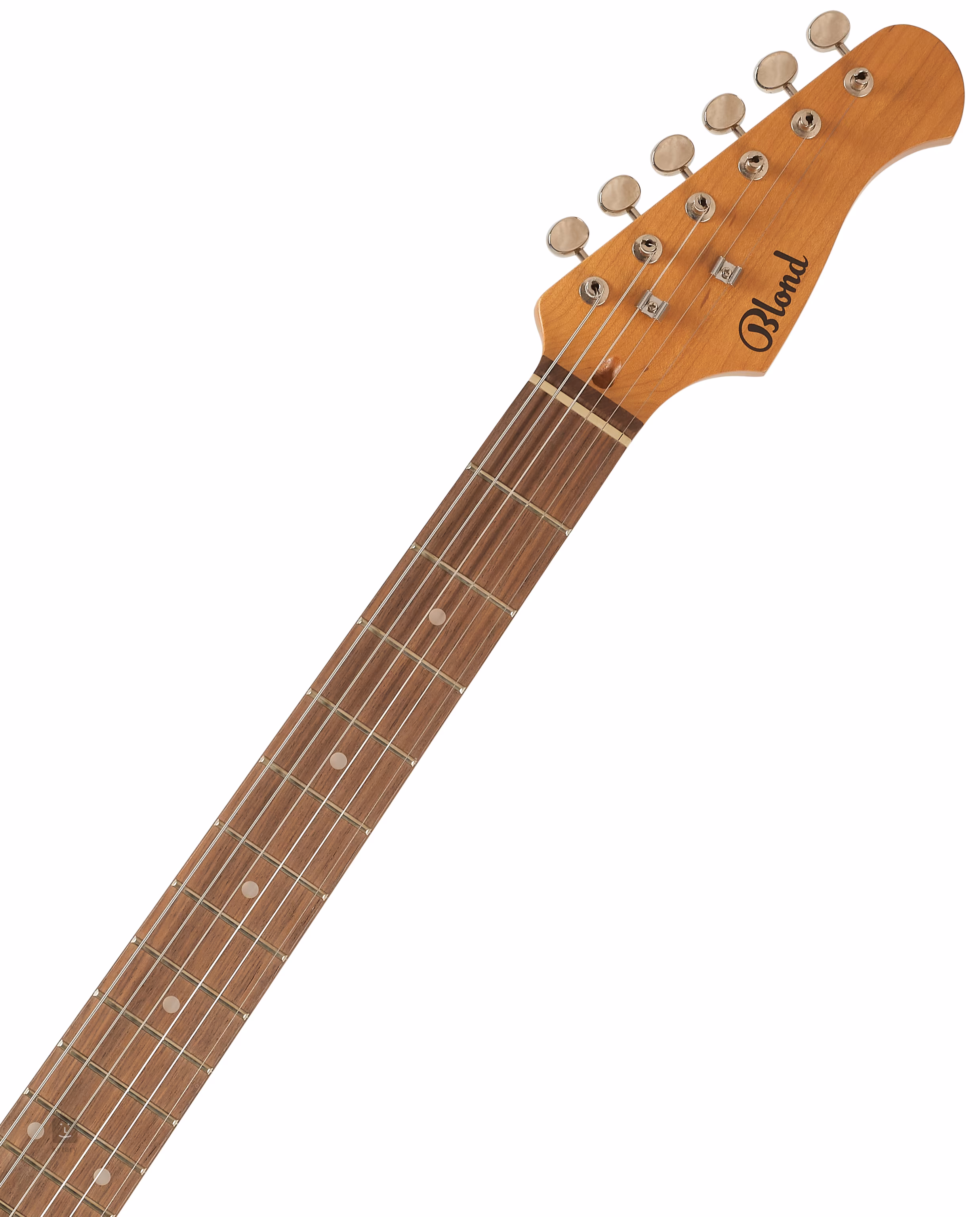 Der Korpus der Gitarre ist aus Linde gefertigt. Der Ahornhals ist auf ein Griffbrett aus gemasertem Ahorn geklebt, das mit zweiundzwanzig Bünden versehen ist. Dank der Wärmebehandlung des Halses (karamellisierter Ahorn) ist das Holz stabiler und erhält gleichzeitig die angenehme goldene Farbe von Instrumenten, die jahrelang gespielt wurden.