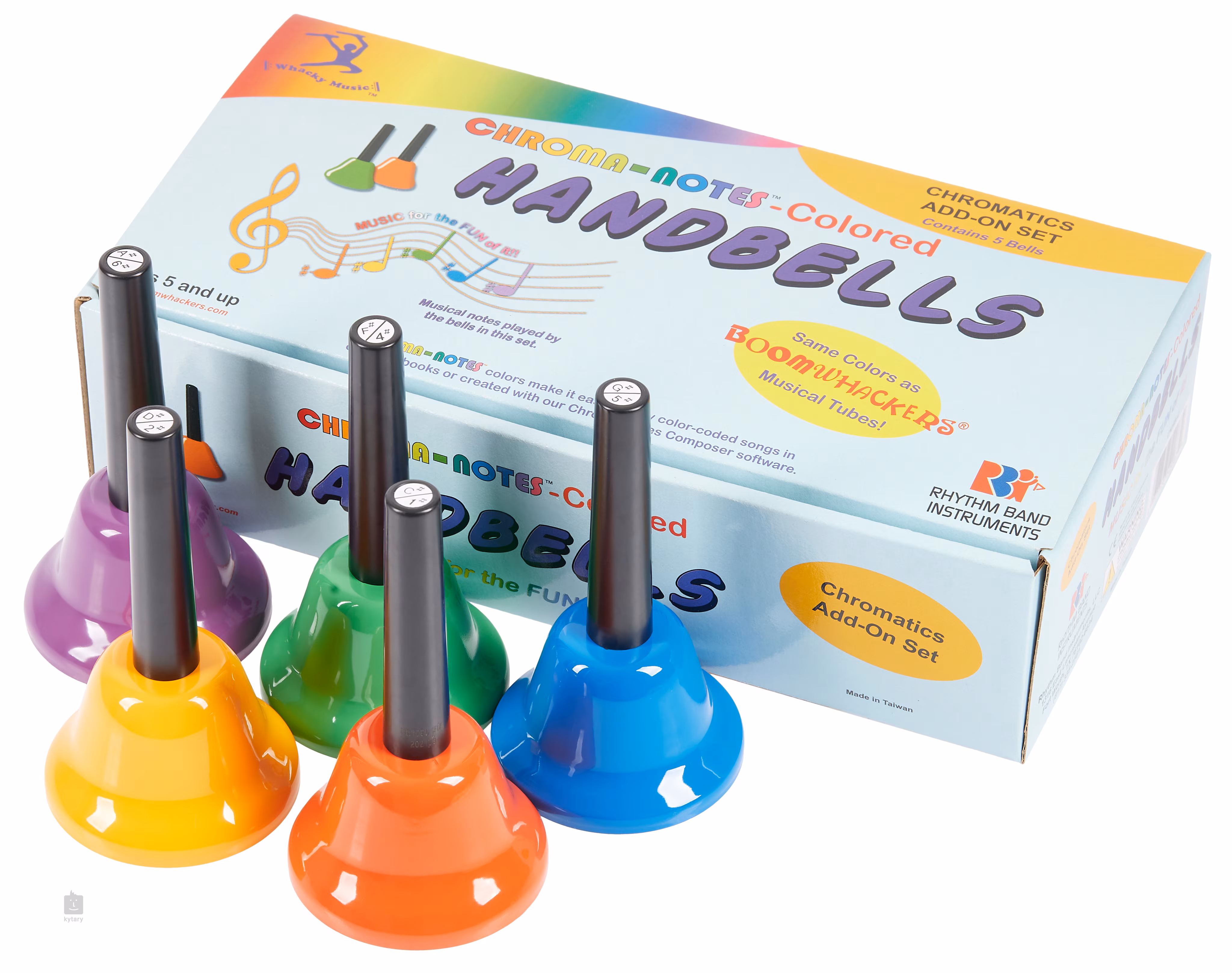 Dieses Set farbiger Glöckchen Chroma-Notes Hand Bells von Boomwhackers ist für den Musikunterricht von Kindern oder für das gemeinsame Spielen auf Camps und gesellschaftlichen Veranstaltungen gedacht. Die Glocken sind in den gleichen Farben wie die Boomwhackers erhältlich und somit eine ideale Ergänzung zum Boomwhacker-Set. Außerdem erleichtern sie die Orientierung und das Lernen anhand der Boomwhacker-Songbücher. Das Modell CNHB-C/strong> ist eine perfekte Ergänzung zum Basisset in C-Dur (Link hier). Es enthält fünf Glocken in den Tonarten C#, D#, F#, G# und A#, mit denen Sie eine vollständige chromatische Tonleiter erstellen können.