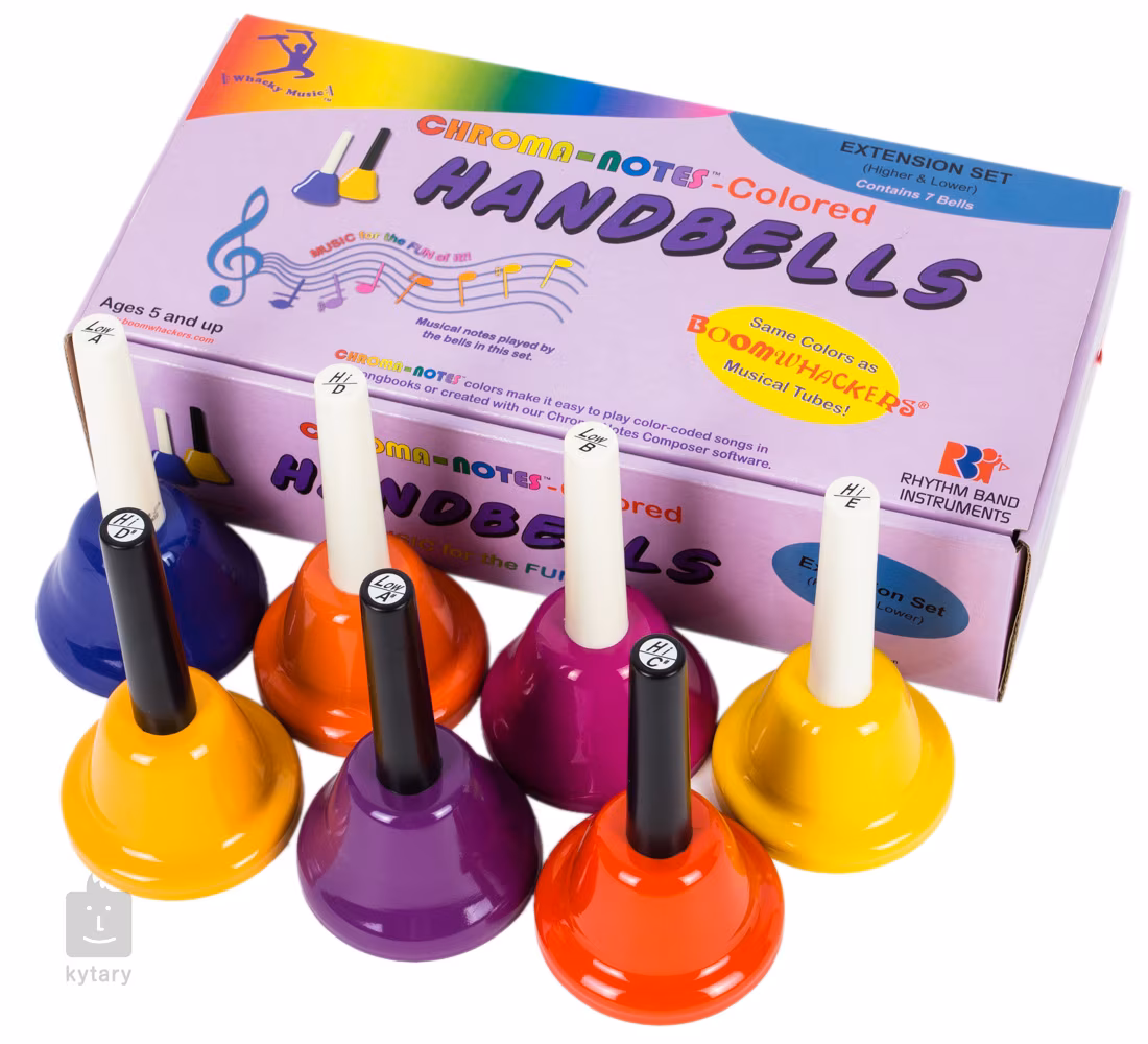 Dieses Set farbiger Glöckchen Chroma-Notes Hand Bells von Boomwhackers ist für den Musikunterricht von Kindern oder für das gemeinsame Spielen auf Camps und gesellschaftlichen Veranstaltungen gedacht. Die Glöckchen sind in den gleichen Farben wie die Boomwhackers erhältlich und somit eine ideale Ergänzung zum Boomwhacker-Set. Außerdem erleichtern sie die Orientierung und das Lernen anhand von Boomwhacker-Songbüchern.