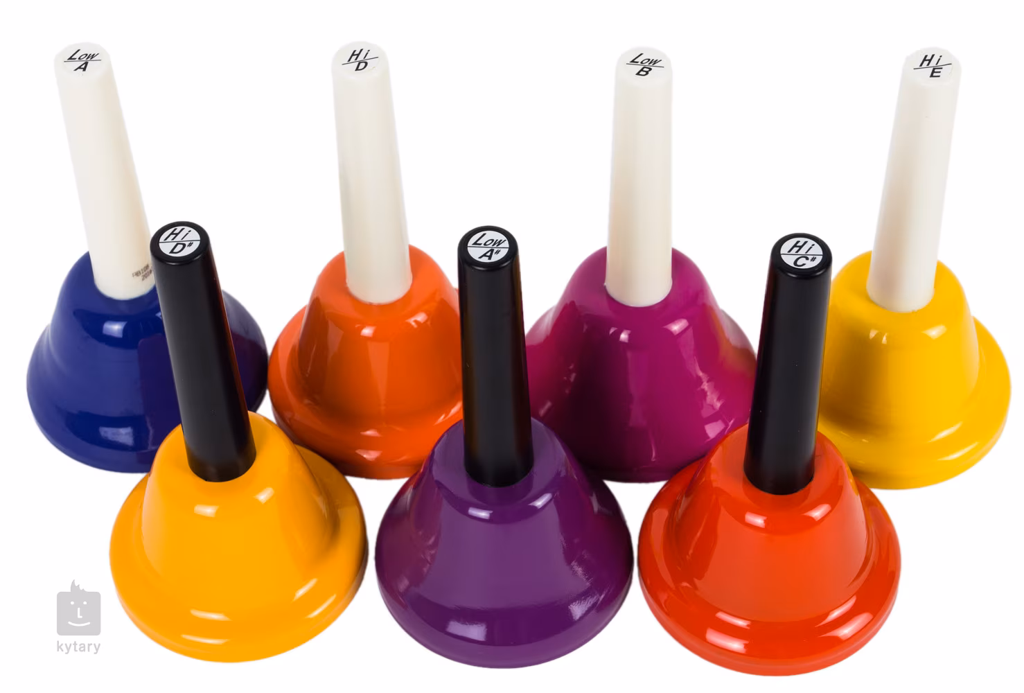 Dieses Erweiterungsset für Glöckchen bildet in Kombination mit dem standardmäßigen achtstimmigen diatonischen Set (CNHB-D) und dem fünfstimmigen Erweiterungsset (CNHB-C) eine Reihe von zwanzig Tönen vom tiefen A bis zum hohen E.