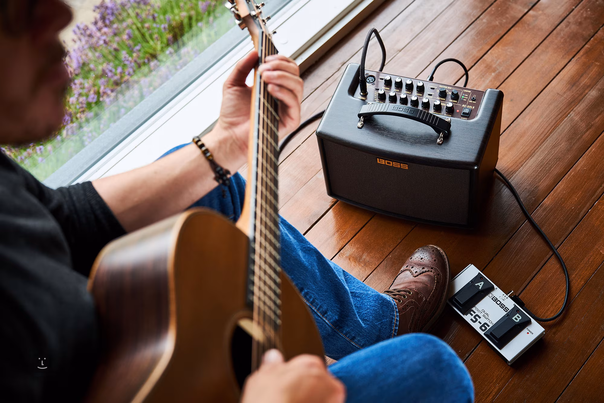 Der Roland AC-22LX ist ein Zweikanal-Akustik-Instrumentencombo, der sich für Songwriter eignet, die sich selbst auf der Akustikgitarre begleiten. The combo offers 10 watts of power and wideband stereo sound from two five-inch speakers, a guitar channel with three-band EQ, reverb/chorus effects and five virtual microphone pickup (AIR FEEL) settings - DRY, XY, AB, ORTF, MID SIDE, a microphone channel with phantom power, two-band EQ and reverb effects, 15 integrierte organische Rhythmus-Patterns (bis zu 119 mit der App), integrierter Looper, Line-Ausgang für den Anschluss an eine PA oder für Homerecording, USB-Schnittstelle (Loopback für Aufnahme und Streaming), Aux-In-Eingang für die Audiowiedergabe von externen Geräten, Kopfhörerausgang (REC OUT) und Fußschalteranschluss (kompatible Fußschalter FS-5U, FS-6, FS-7 nicht im Lieferumfang enthalten).