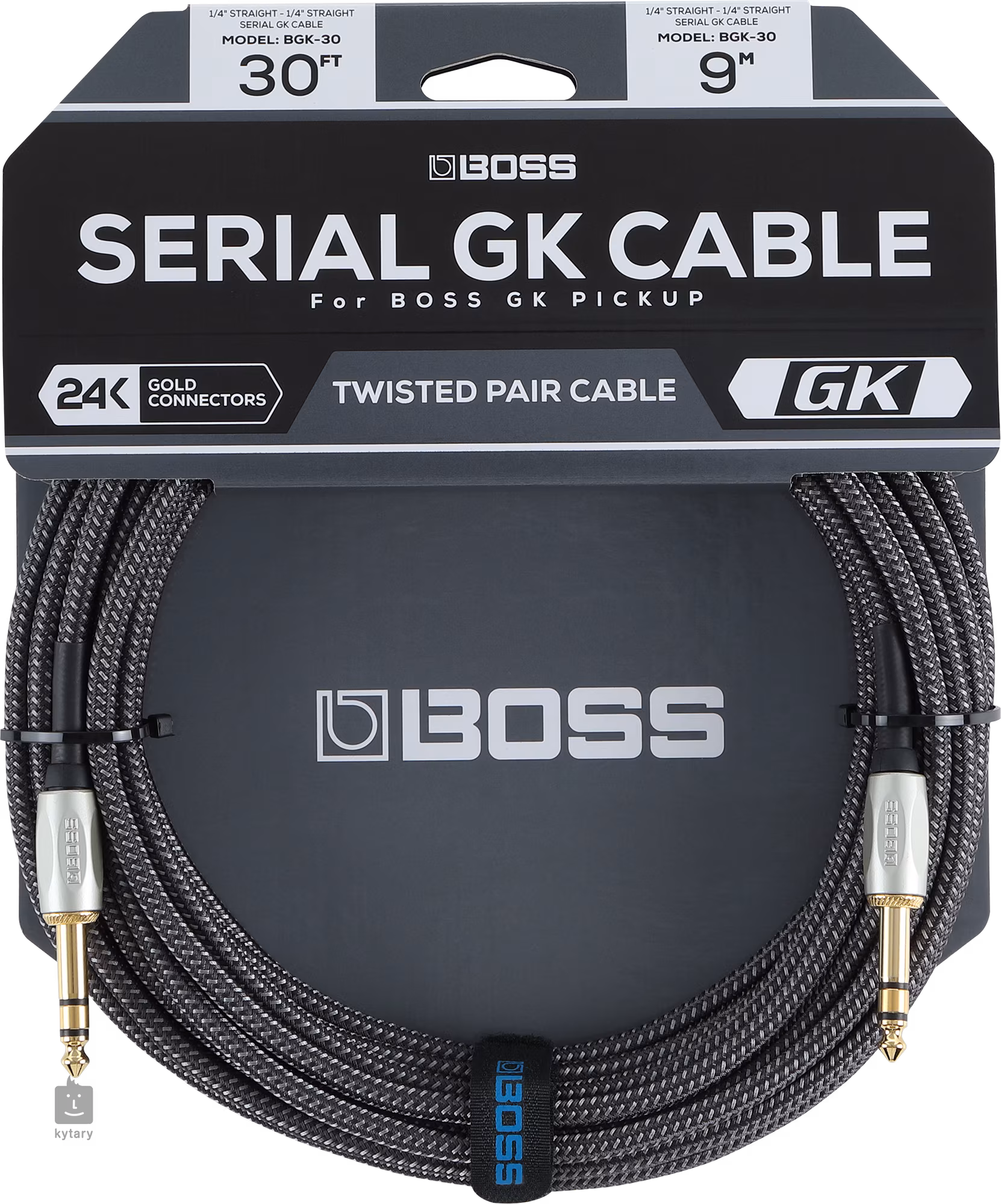 Die BGK-Digitalkabel von Boss wurden speziell für die Verwendung mit BOSS-Gitarrensynthesizern entwickelt, die mit der seriellen GK-Digitalschnittstelle kompatibel sind (einschließlich GK-5/GK-5B-Tonabnehmern und dem GM-800-Modul). Die Kabel verfügen über eine Abschirmung, 24-karätig vergoldete Stecker und einen strapazierfähigen gewebten Außenmantel.