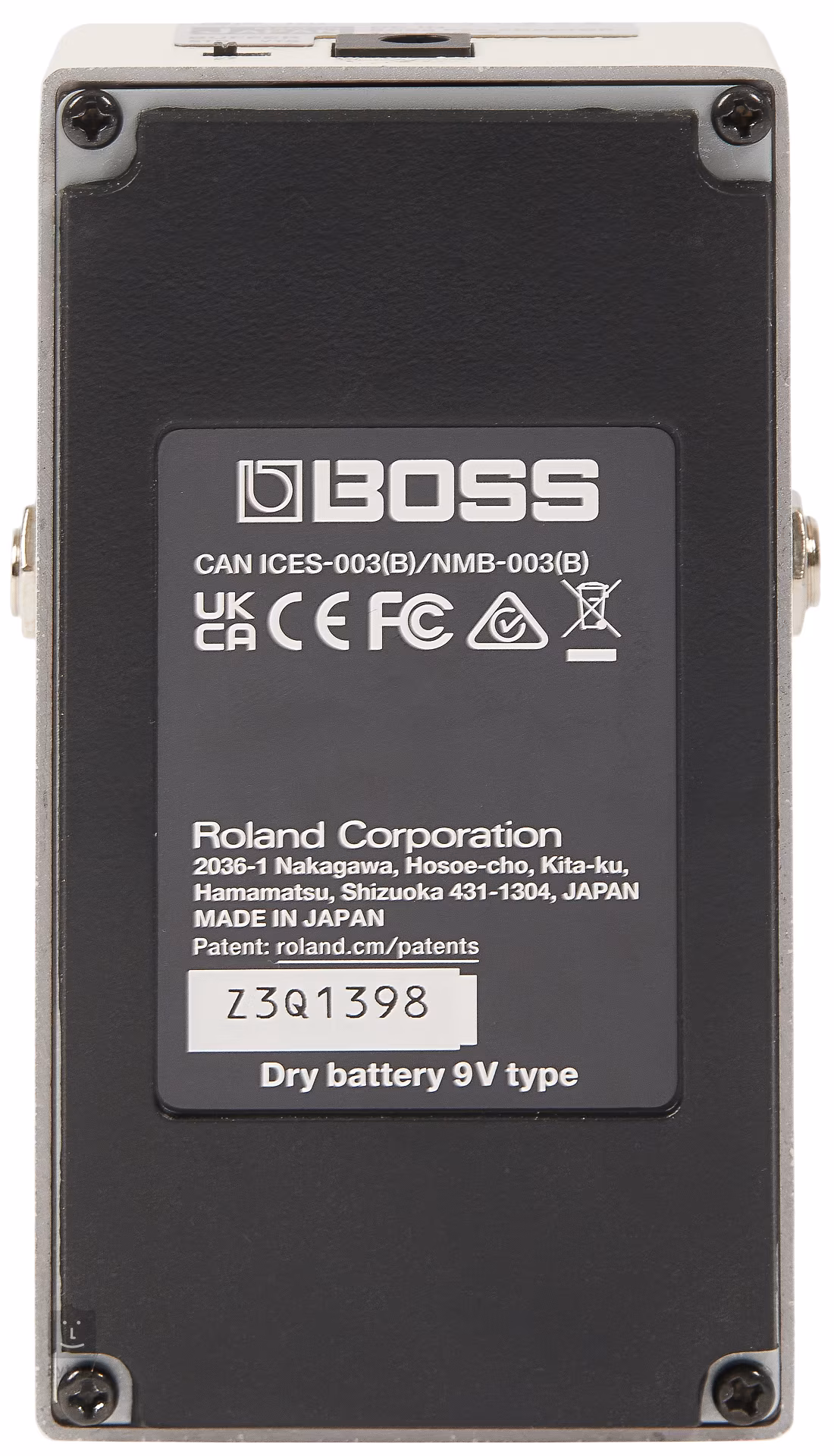 Mit den Standard-Reglern werden Sättigungspegel und Ausgangslautstärke eingestellt, während der Eingangspuffer-Schalter die Wahl zwischen einem Standard-Puffer (Standard) und einem Vintage-Puffer mit niedrigerer Eingangsimpedanz (Vintage) ermöglicht. Für die Stromversorgung des Boss BP-1W Pedal-Effekts ist eine 9-V-Batterie oder ein 9-V-Adapter erforderlich (Adapter nicht im Lieferumfang enthalten).