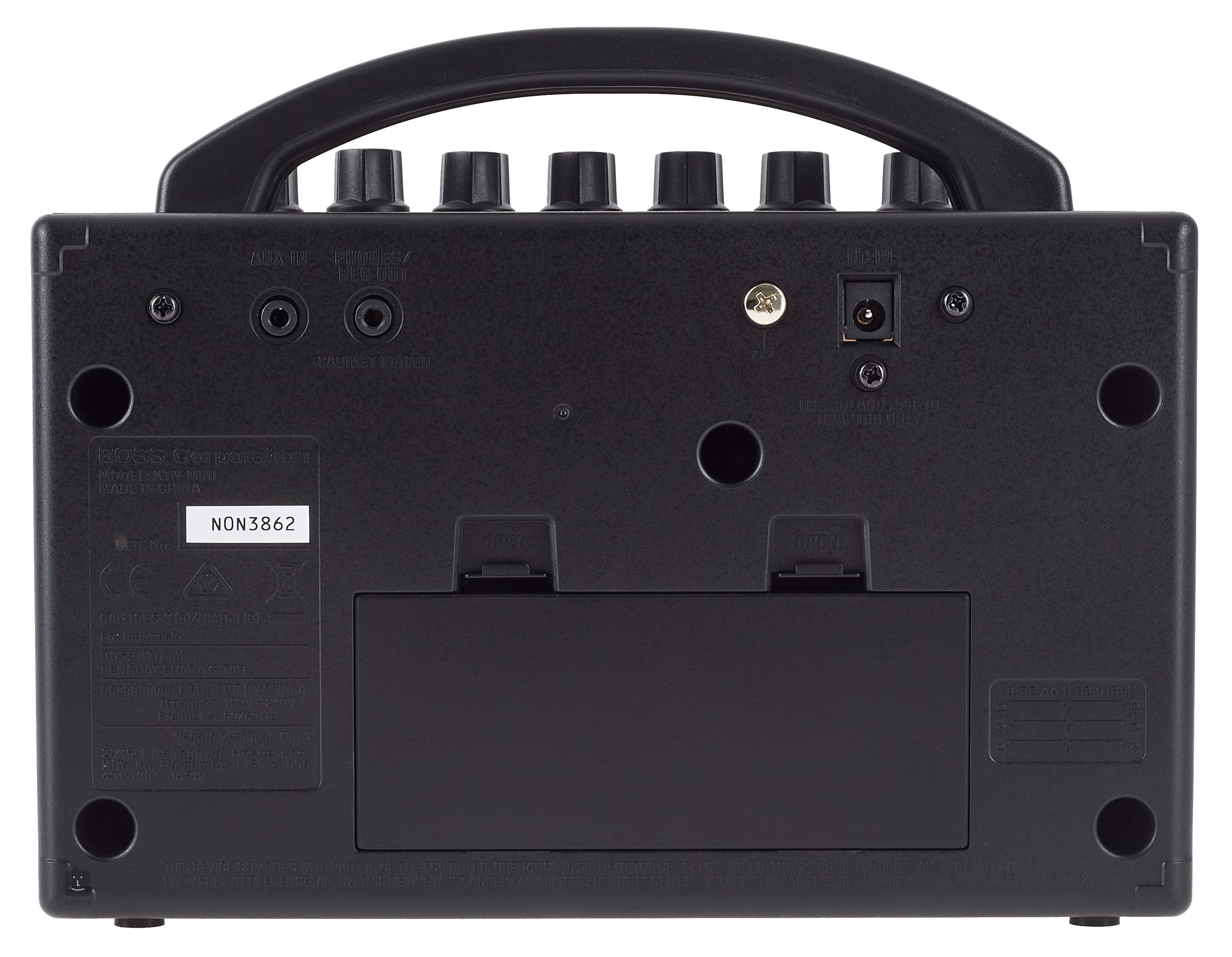 Das Gitarrencombo kann mit sechs AA-Alkalibatterien (Laufzeit bis zu 7 Stunden pro Ladung), sechs wiederaufladbaren Ni-MH-Batterien (AA, HR6, Laufzeit bis zu 9 Stunden pro Ladung) oder einem Adapter (PSB – nicht im Lieferumfang enthalten) betrieben werden.