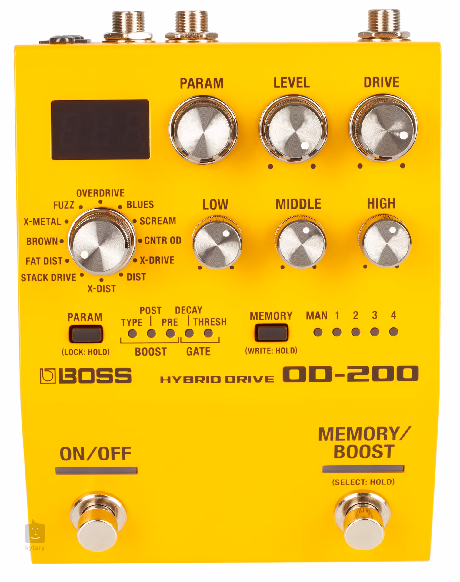 Im Falle des OD-200-Effekts werden Sie die Multifunktions-Fußschalter zu schätzen wissen, die neben dem Ein- und Ausschalten des Effekts auch eine Boost-Funktion mit Pre/Post-Boost-Einstellung, ein praktisches Noise Gate und die Möglichkeit bieten, zwischen vier internen Speichern umzuschalten, um Ihre Lieblingspresets einfach zu speichern und wieder abzurufen.