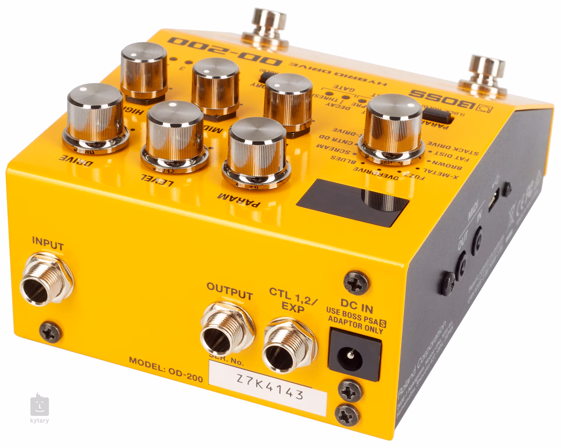 Der Boss OD-200 Hybrid Drive bringt frischen Wind in die Welt der Ovedrive-, Distortion- und Fuzz-Pedale, so dass man sie endlich alle zusammen in einem handlichen Effektpedal hat. Es bietet zwölf Grundtypen der genannten Effekte, deren Charakter mit dem Dreiband-EQ, den Standard-Reglern Level und Drive sowie dem Param-Potentiometer, dessen Funktion (Regelparameter) je nach gewähltem Effekttyp variiert, nach Belieben eingestellt werden kann.