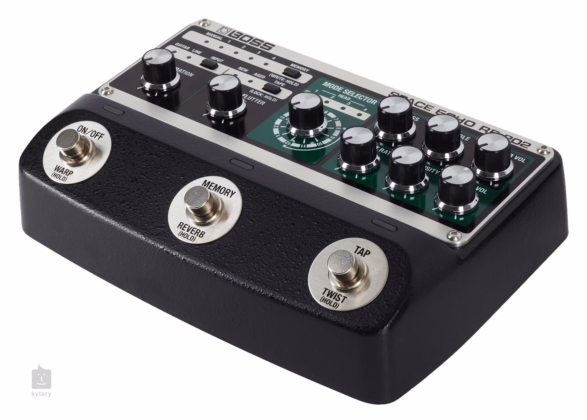 Das Pedal bietet die klassische Drei-Bandkopf-Konfiguration des Originals plus einen zusätzlichen Bandkopf - insgesamt 12 Modi, einzigartige Kombinationen von Reverb-, Echo- und Delay-Effekten. Alle Vorgänge/Änderungen, wie z. B. die allmähliche Veränderung der Stimmung beim Drehen des Repeat Rate-Reglers und die hallige Rückkopplung beim Drehen des Intensity-Reglers ganz nach rechts, entsprechen dem Verhalten des Originals. Dank des einstellbaren virtuellen Bandalters und der flexiblen Drehregler können Sie sowohl brandneue Bandechosounds als auch den Charakter eines abgenutzten Bandes aus einem älteren Gerät einstellen. Der Saturation-Regler wurde sorgfältig auf das tatsächliche RE-201-Magnetband und den Vorverstärker kalibriert, d. h. wenn Sie ihn nach rechts drehen, wird der Sound wärmer und komprimierter. Und mit der ausdrucksstarken Wow & Flutter-Funktion lassen sich alle natürlichen Modulationen erzeugen, die für den Klang des Space Echo-Effekts unerlässlich sind.