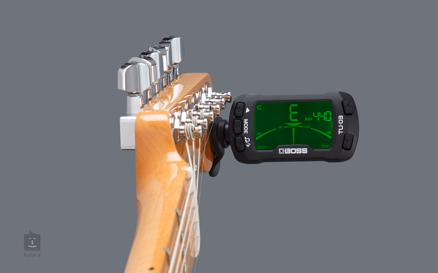 Das Boss TU-03 ist ein kompaktes und einfaches Ansteck-Stimmgerät zum Stimmen von Gitarren, Bässen, Geigen oder Ukulelen, das auch als Metronom mit verschiedenen Rhythmuspatterns verwendet werden kann. Es verfügt über eine ausreichende Reichweite und Genauigkeit, um mehrsaitige Bassgitarren zu stimmen, sowie über Modi für flache und doppelte Stimmung, Referenztonkalibrierung und natürlich einen voll chromatischen Modus.