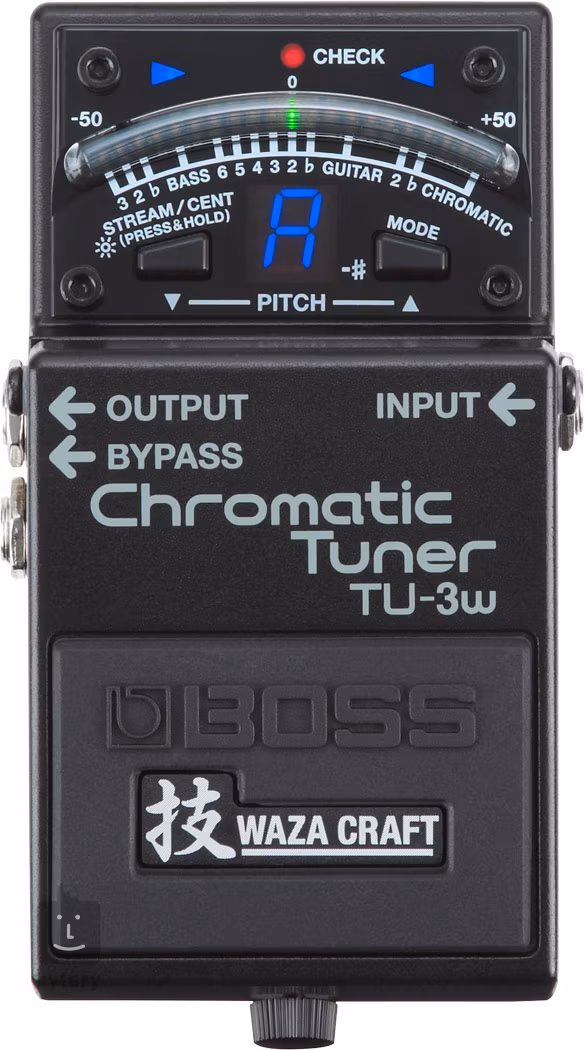 Jetzt gibt es ihn auch in der Boss Waza Craft Serie, einer exklusiven Serie von Effekten mit höchster Verarbeitungsqualität. Das Modell TU-3W ist einfach eines der besten Stimmgeräte, die man auf dem Markt finden kann. Zusätzlich zu allen Tuning-Funktionen, die man vom Standardmodell kennt, bietet es eine neu gestaltete interne Schaltung und wahlweise einen gepufferten oder echten Bypass, so dass Ihr Signal unter den besten Bedingungen ohne Verzerrung oder Verlust der Spezifität durch den Tuner läuft.