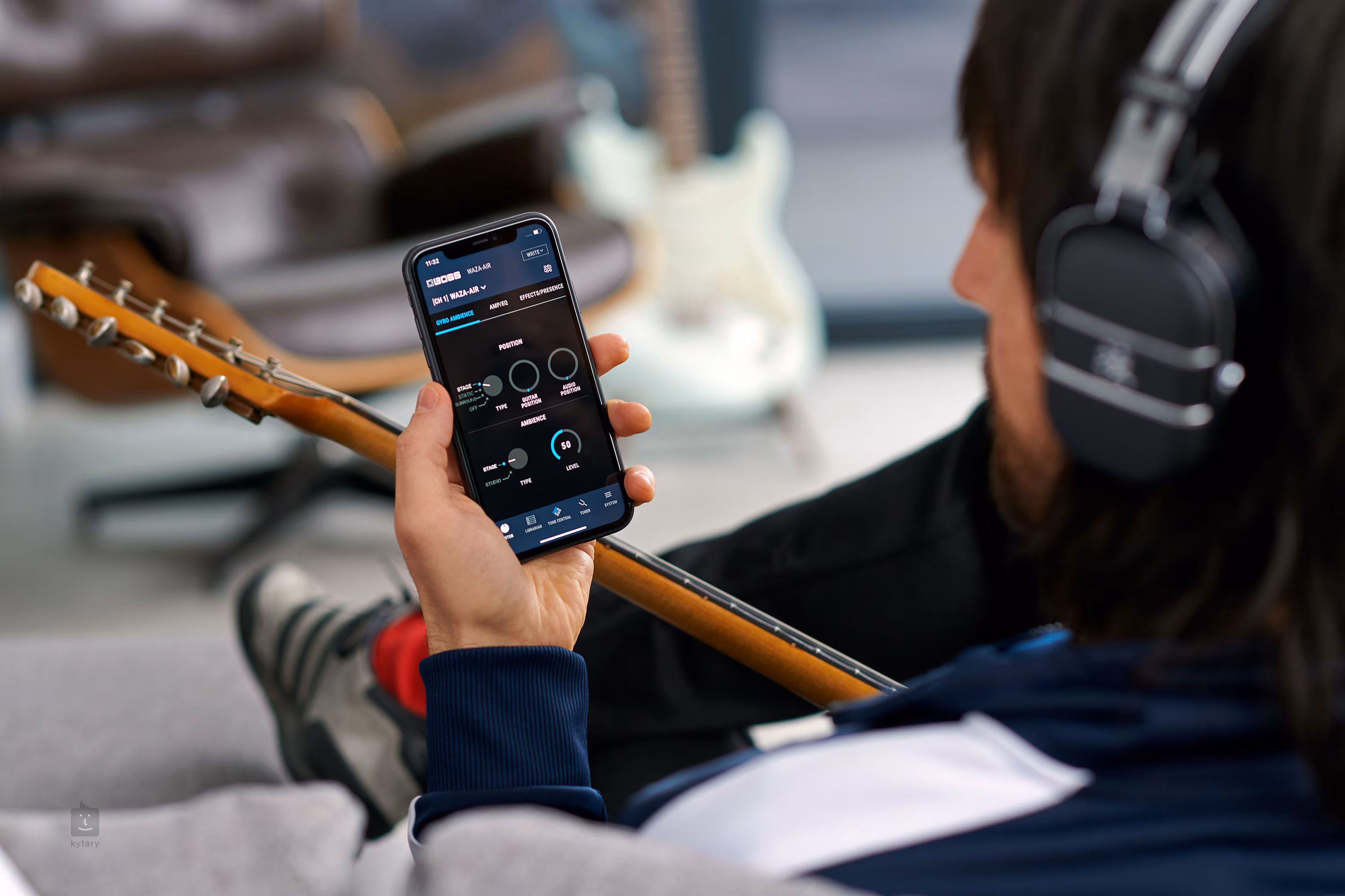 Waza-Air features tones and controls derived from the stage-class Katana amplifiers, with full user customization and a variety of ready-to-play presets available via the free BOSS Tone Studio app. Five different amp types provide tones from classic clean to high gain, plus a full-range voice that’s perfect for bass and acoustic-electric guitar. Over 50 effect types are available as well, including mod, delay, and reverb effects optimized for Waza-Air’s unique spatial experience. And with six onboard memories, you can store favorite setups and recall them with dedicated buttons.