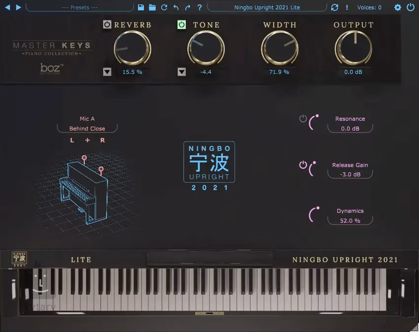 Das BOZ Digital Labs Ningbo Upright 2021 ist ein virtuelles Klavier, das entwickelt wurde, um den authentischen Klang und das Spielgefühl des Ningbo Upright Pianos wiederzugeben, eines beliebten Modells, das für seinen unverwechselbaren Klang und seinen einzigartigen Ton bekannt ist.