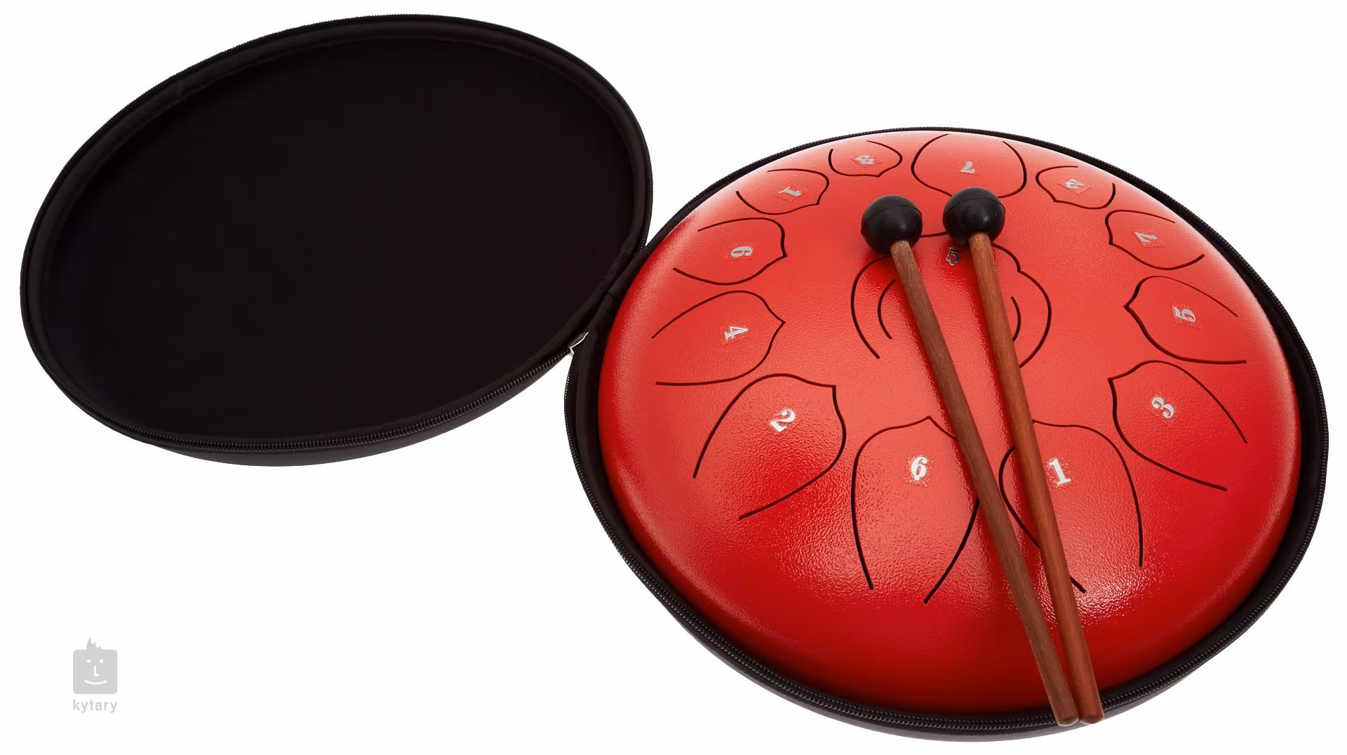 Diese Zungentrommel besteht aus Kohlenstoffstahl, der speziell geformt ist und in den präzise gestaltete Zungen geschnitten werden. Wenn man den Schlägel oder die Hand anschlägt, erklingt die ganze "Trommel", und dank ihrer Konstruktion erzeugt sie einen sehr harmonischen, runden und weichen Klang. Das macht ihn ideal für Yoga, Entspannung oder Meditation. Es kann aber auch als Solospieler oder in einer Band eingesetzt werden. Dank seiner natürlichen Stimmung kann es auch ohne musiktheoretische Kenntnisse gespielt werden, so dass das Instrument z. B. im Unterricht eingesetzt werden kann. Zusätzlich zu den Zungentrommeln selbst enthält das Paket auch ein Paar Schlägel, einen Schlägelhalter, vier Ringe für lauteres Fingerspiel, Aufkleber zur einfachen Tonunterscheidung und eine Schutzhülle.