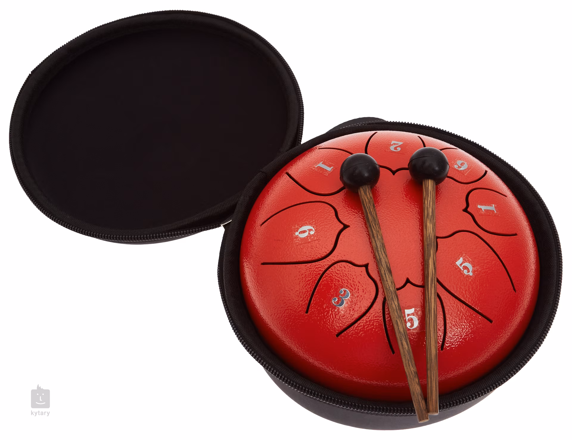 Diese Zungentrommel besteht aus Kohlenstoffstahl, der speziell geformt ist und in den präzise gestaltete Zungen geschnitten werden. Wenn man den Schlägel oder die Hand anschlägt, erklingt die ganze "Trommel", und dank ihrer Konstruktion erzeugt sie einen sehr harmonischen, runden und weichen Klang. Das macht ihn ideal für Yoga, Entspannung oder Meditation. Es kann aber auch als Solospieler oder in einer Band eingesetzt werden. Dank seiner natürlichen Stimmung kann es auch ohne musiktheoretische Kenntnisse gespielt werden, so dass das Instrument z. B. im Unterricht eingesetzt werden kann. Zusätzlich zu den Zungentrommeln selbst enthält das Paket auch ein Paar Schlägel, einen Schlägelhalter, vier Ringe für lauteres Fingerspiel, Aufkleber zur einfachen Tonunterscheidung und eine Schutzhülle.