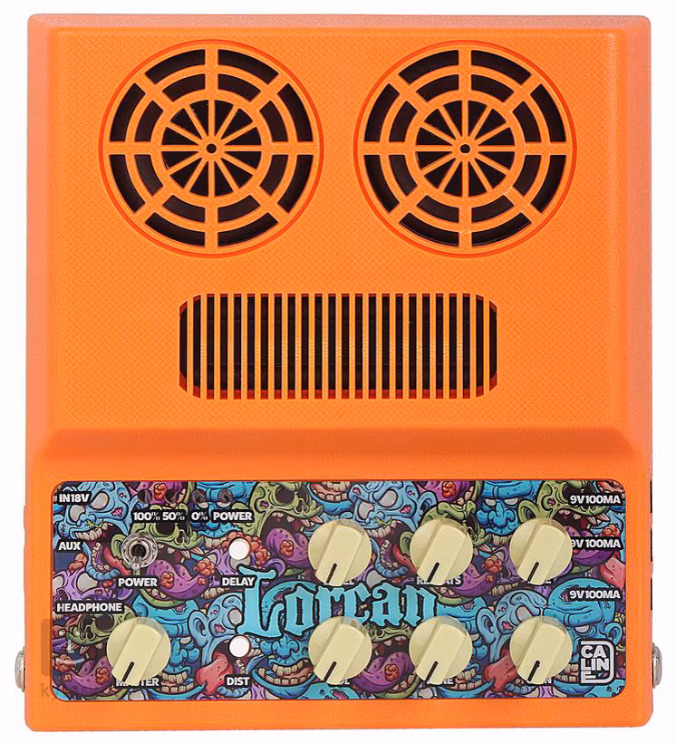 Das Gerät ist mit einem Mono-Eingang und einem Mono-Ausgang ausgestattet. Außerdem verfügt es über einen Kopfhörerausgang, einen Aux-In-Eingang für die Wiedergabe externer Audioquellen und drei 9-V-Ausgänge, mit denen Sie andere Effekte, die 9-V-Strom benötigen, mit Strom versorgen können. Außerdem gibt es eine Bluetooth-Funktion, mit der Sie das Gerät als tragbaren Bluetooth-Lautsprecher verwenden oder mit Ihren Lieblingskünstlern jammen können. Im Lieferumfang enthalten sind ein 18-V-Netzteil und 3 Gleichstromkabel für den Anschluss an die Effekte.