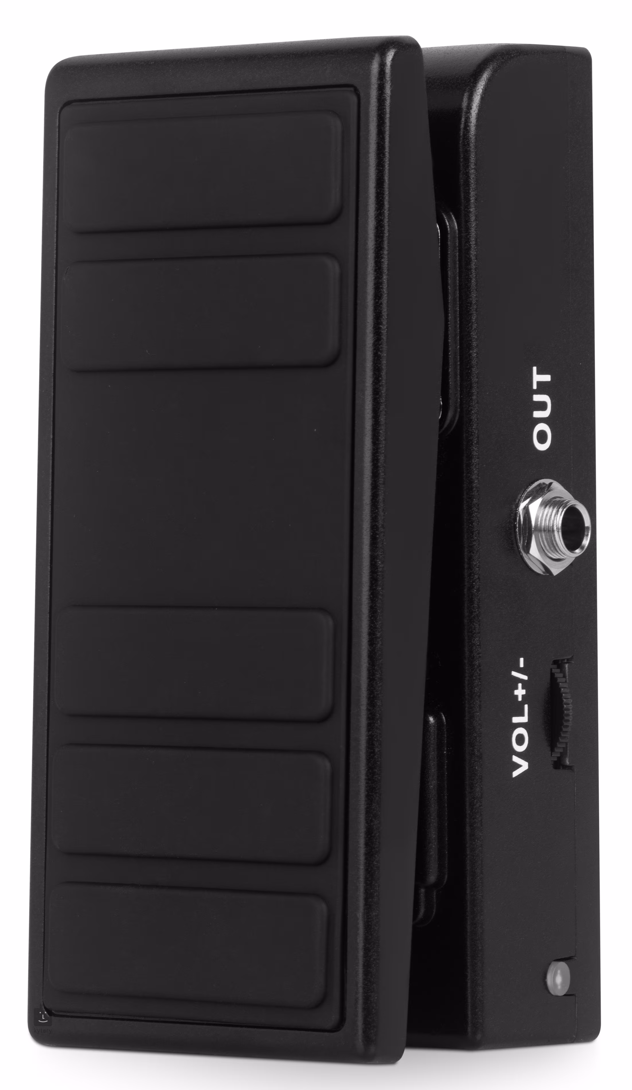 An der Seite des Geräts befindet sich ein Lautstärkeregler (Volume +/-), mit dem Sie die Lautstärke des Effekts einstellen und das Gitarrensignal verstärken oder dämpfen können. Es gibt einen Mono-Eingang für den Anschluss eines Instruments und einen Mono-Ausgang für den Anschluss an andere Effekte oder eine Gitarre. Beim Einsatz in einem Pedalboard empfehlen wir, diesen Effekt ganz am Anfang des Signalwegs zu platzieren.
