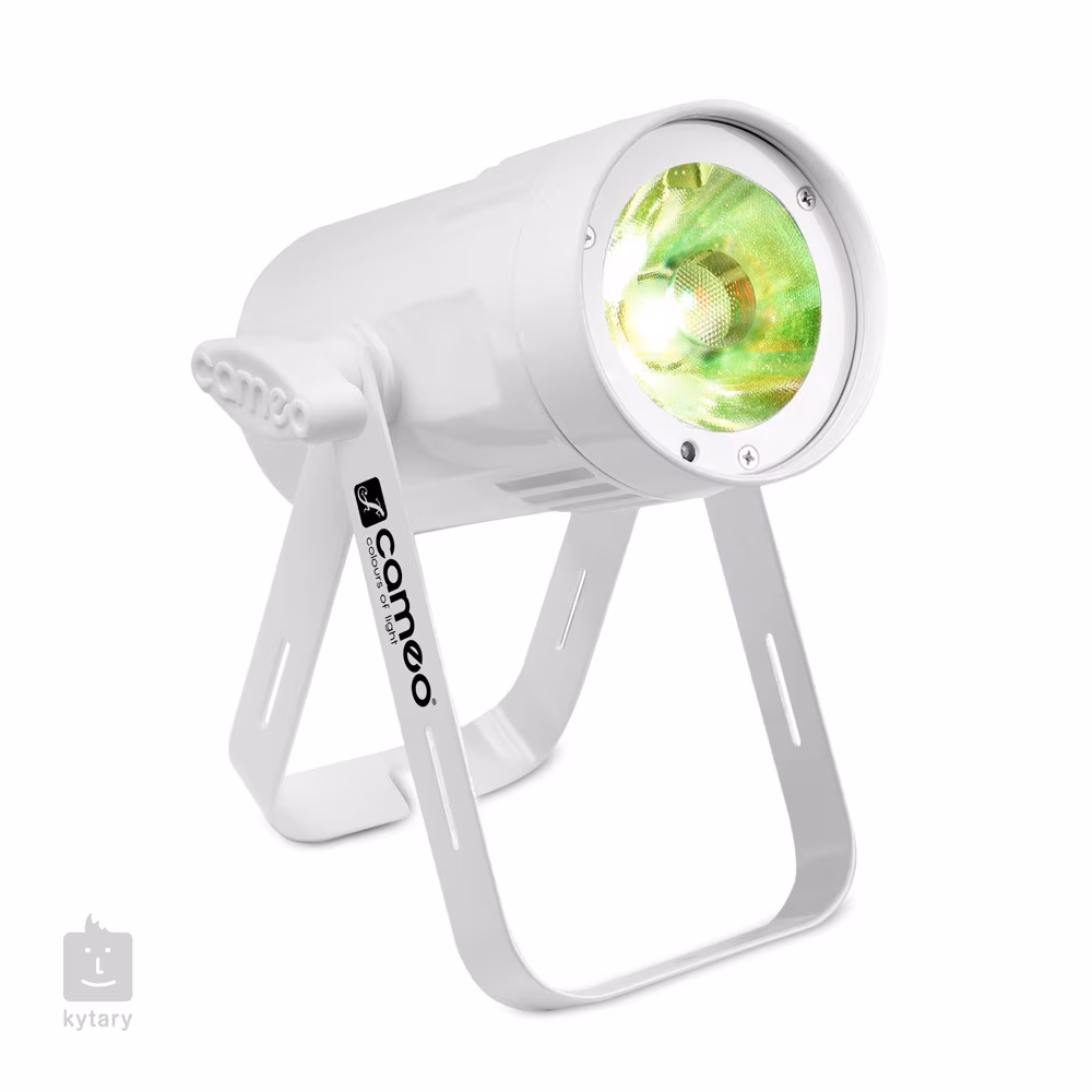 Der Scheinwerfer Q-SPOT 15 RGBW WH von CAMEO ist ein sehr kompakter Scheinwerfer mit einer einzigen 15W-LED, der eine vielfältige RGBW-Farbpalette bietet, die Ihnen eine Fülle von Mischmöglichkeiten eröffnet. Gleichzeitig nutzt er alle Vorteile der LED-Technologie wie Energieeinsparung, geringe Wärmeentwicklung und lange Lebensdauer - seine Diode hält bis zu 30.000 h. Der Strahler selbst hat einen Abstrahlwinkel von 4,5° für ein scharfes, fokussiertes Licht, aber ein Paar Ersatzlinsen mit Abstrahlwinkeln von 10° und 25° werden ebenfalls mitgeliefert, um einen diffuseren Lichtstrahl zu erhalten. Q-SPOT ermöglicht dank der 16-Bit-Technologie eine sehr sanfte Lichtabschwächung. Außerdem verfügt er über einen Strobe-Effekt.
