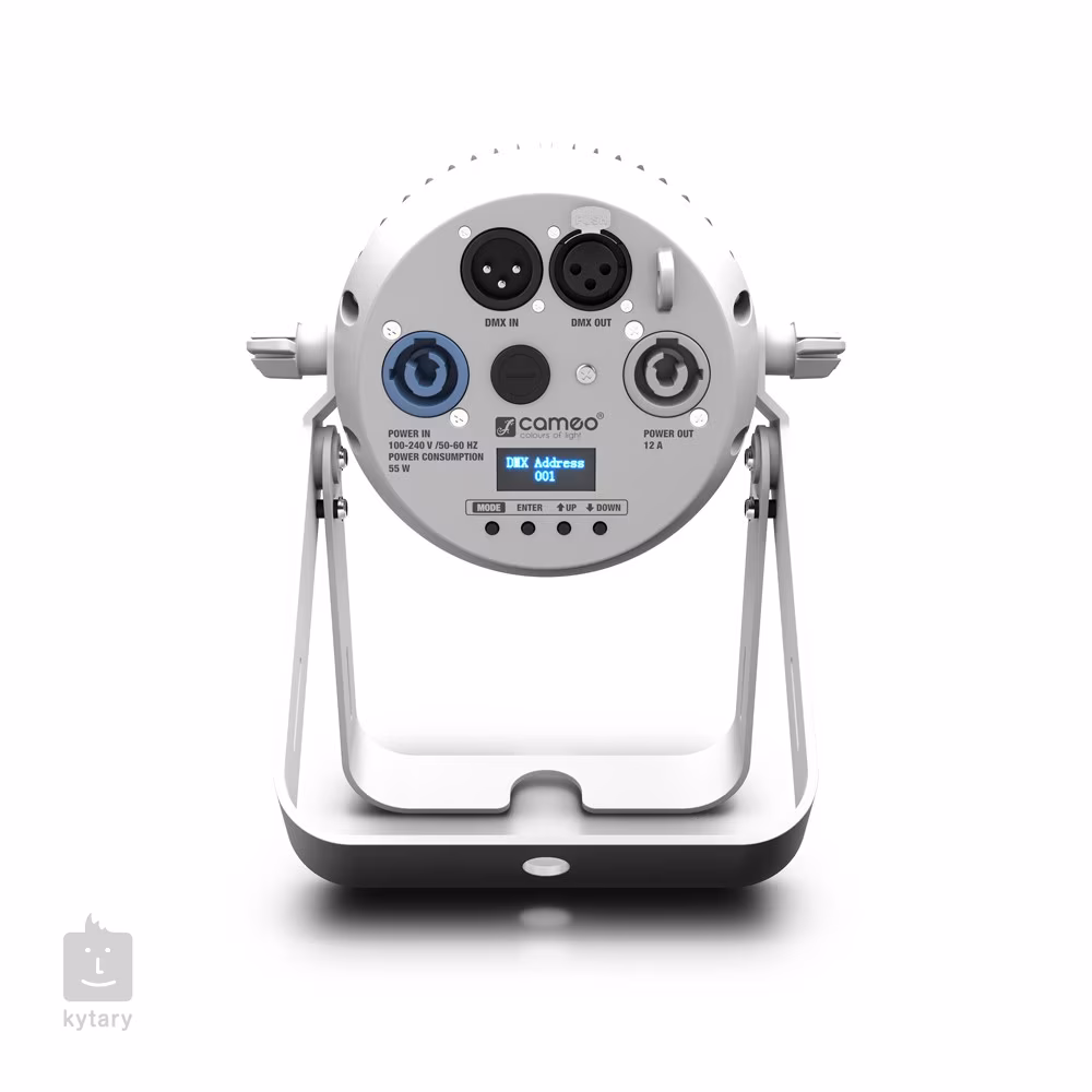 Der Scheinwerfer Q-SPOT 40 WW WH von CAMEO ist ein sehr kompakter Strahler mit einer einzigen 40W-LED, die ein warmweißes Licht mit einer Farbtemperatur von 3000K ausstrahlt, so dass er überall dort eingesetzt werden kann, wo ein weiches, warmes Licht benötigt wird, um Atmosphäre zu schaffen. Außerdem nutzt er alle Vorteile der LED-Technologie wie Energieeinsparung, geringe Wärmeentwicklung und lange Lebensdauer - seine Diode hält bis zu 50.000 h. Der Reflektor selbst hat einen Abstrahlwinkel von 4,5° für ein scharfes, fokussiertes Spotlicht, aber ein Paar Ersatzlinsen mit Abstrahlwinkeln von 10° und 15° für einen diffuseren Strahl sind ebenfalls im Lieferumfang enthalten.