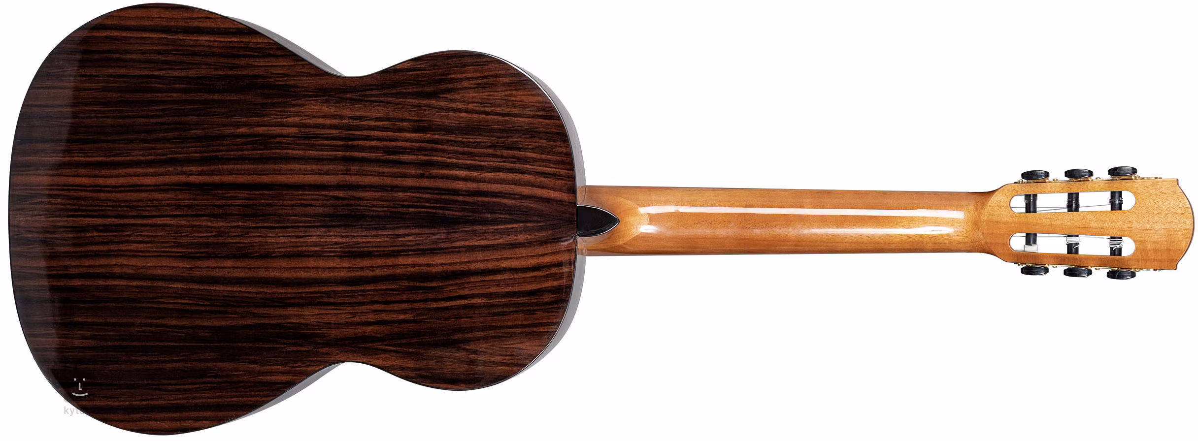 Die Saiten sind in klassischer offener Mechanik und einem Purpleheart-Griffbrett aufgezogen. Die schöne Verarbeitung wird durch die Hochglanzlackierung des Resonanzbodens, die Zierrosette, das umlaufende Deckenband und die goldene Hardware unterstrichen. Die Gitarre wird in einem gepolsterten Koffer (8 mm dicke Polsterung) geliefert.