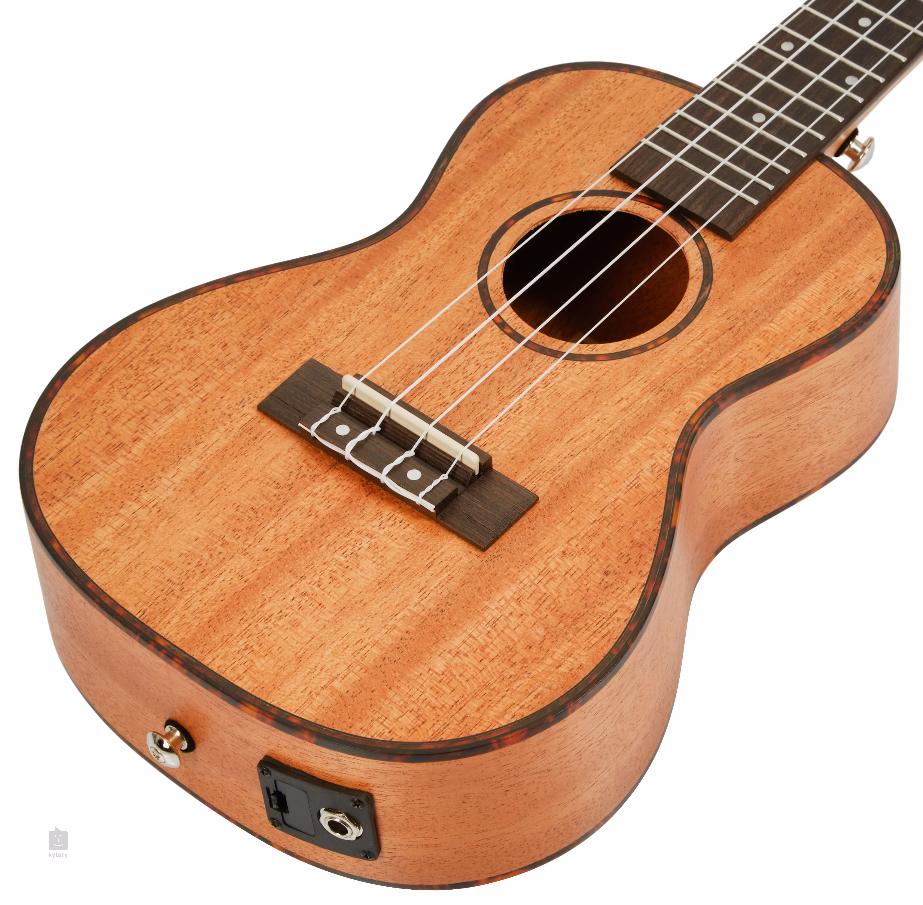 Der Korpus der Ukulele ist aus Mahagoni gefertigt. Das Griffbrett aus Palisander ist durch achtzehn Bünde unterteilt (das gleiche Material wird für das Griffbrett verwendet). Die Saiten sind in verchromten gitarrenähnlichen Stimmmechaniken gelagert. Die schöne Verarbeitung wird durch die Rosette und die beidseitig umlaufende Zierleiste des Korpus aus Schildpatt-Imitat unterstrichen.