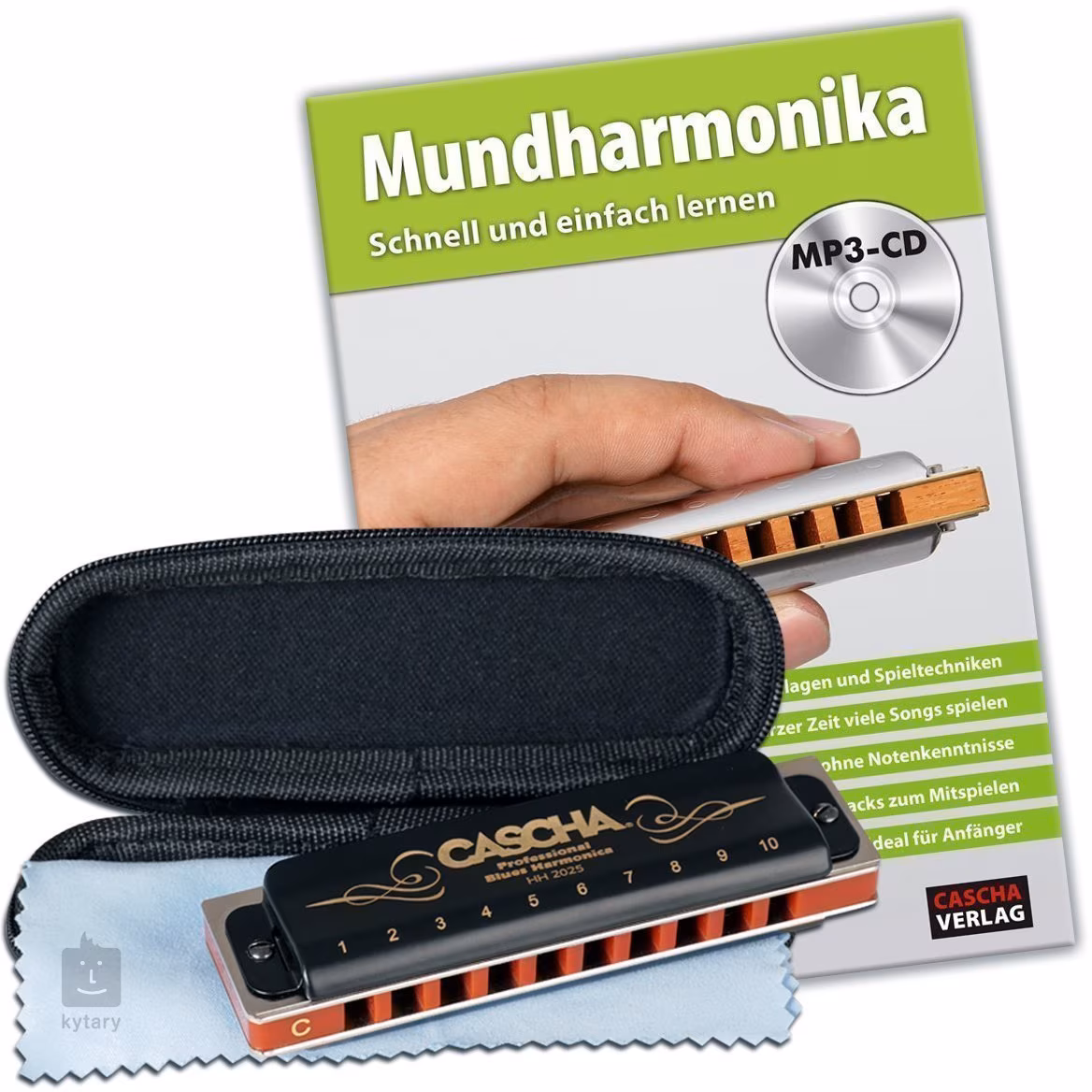 Das Professional Blues Harmonica Set enthält eine diatonische Mundharmonika in C-Dur, einen Mundharmonika-Koffer, ein Reinigungstuch und eine viersprachige Mundharmonika-Schule (in Englisch, Deutsch, Französisch und Spanisch) mit QR-Codes für den Zugang zu begleitenden Audio-Demonstrationen.