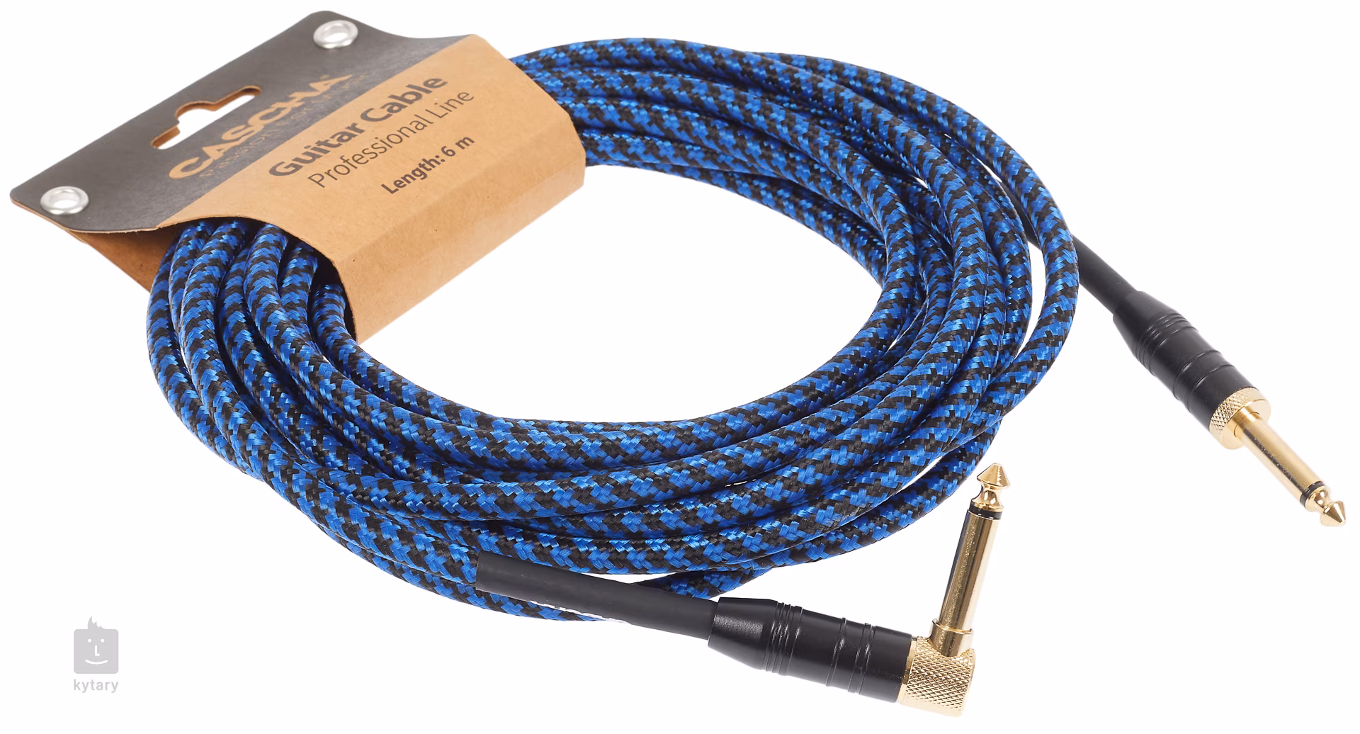 Cascha Professional Line Guitar Cable, Angled, Tweed Blue, 6 m