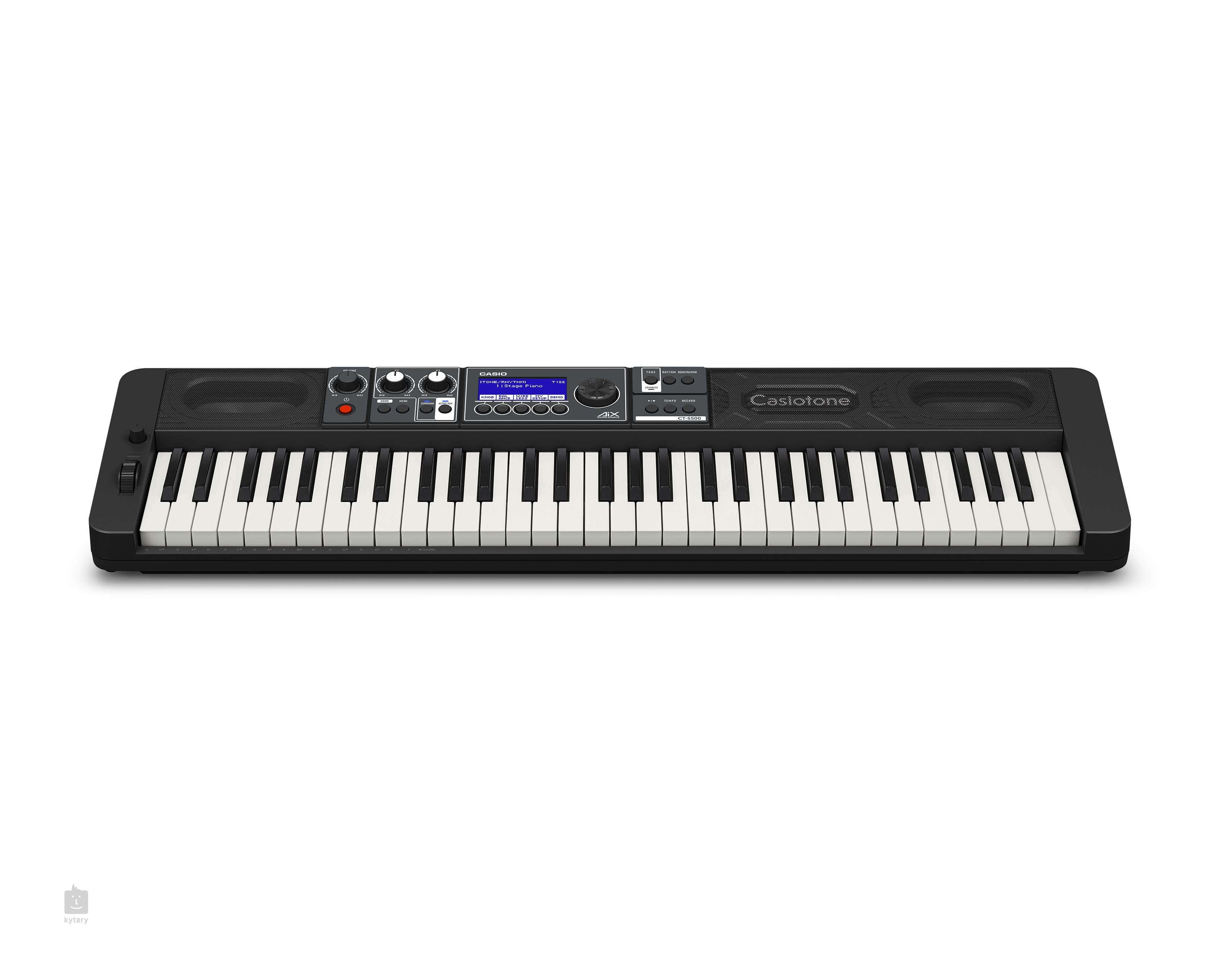 Das Casio CT-S500 hat 61 Standardtasten mit drei Empfindlichkeitsstufen, und Sie können das Klangsignal mit 24 Reverb, 12 Chorus, 15 Delay, 800 Klangregistern anreichern oder die Begleitautomatik nutzen, bei der Sie aus 243 Rhythmen wählen können. Die Tasten bieten außerdem ein integriertes Metronom, eine Transpose/Tune-Taste, einen Sechs-Spur-Sampler und MIDI-Empfangsbuchsen. Zwei 2,5-W-Lautsprecher sorgen für den Sound, und wenn Sie nachts spielen, werden Sie definitiv vom Kopfhörerausgang auf der Rückseite profitieren. Auf der Rückseite befinden sich außerdem ein Aux-Eingang für einen Musikplayer, ein Line-Ausgang und ein Eingang für ein Sustain-Pedal. Das CT-S500 ist vollständig kompatibel mit der Casio Music Space App, die Sie kostenlos bei Google Play oder im Appstore herunterladen können. Ebenfalls im Lieferumfang enthalten ist der Bluetooth-Adapter WU-BT10 für die drahtlose Kommunikation (Audio/Midi) zwischen dem Instrument und einem Computer oder einem tragbaren Lautsprecher.