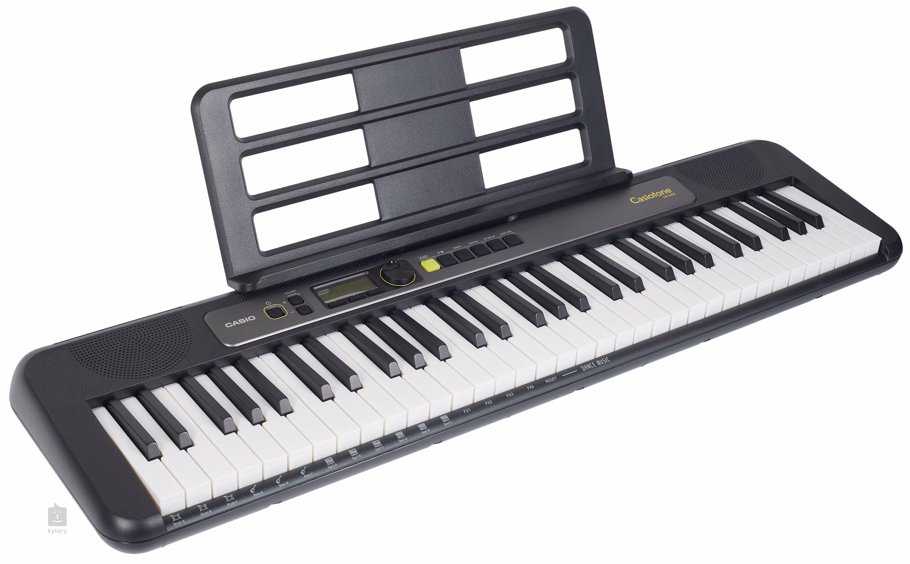 Das Casio LK-S250 verfügt über 61 hintergrundbeleuchtete Standardtasten mit zwei Empfindlichkeitsstufen, und Sie können das Klangsignal mit zehn Reverb-Effekten und 400 Klangregistern anreichern oder die Begleitautomatik nutzen, bei der Sie aus 77 Rhythmen wählen können. Die Tasten bieten außerdem ein integriertes Metronom, eine Transponier-/Stimmtaste und MIDI-Empfangsbuchsen. Ein übersichtliches Display zeigt Ihnen Ihre Tasteneinstellungen an, und dieses Modell verfügt auch über einen unterhaltsamen Dance-Music-Modus, mit dem selbst absolute Anfänger moderne Tanzstile spielen können. Dance Music enthält fünfzig Musikermuster und unzählige Stimmeffekte. Zwei 2,5-W-Lautsprecher sorgen für den Sound, und wenn Sie nachts spielen, werden Sie von dem Kopfhörerausgang auf der Rückseite profitieren. Auf der Rückseite befinden sich außerdem ein Aux-Eingang für ein Mikrofon (Dance Music-Modus)/Musikplayer und ein Ausgang für ein Sustain-Pedal. Das LK-S250 ist vollständig kompatibel mit der Chordana-App, die Sie kostenlos bei Google Play oder im Appstore herunterladen können.