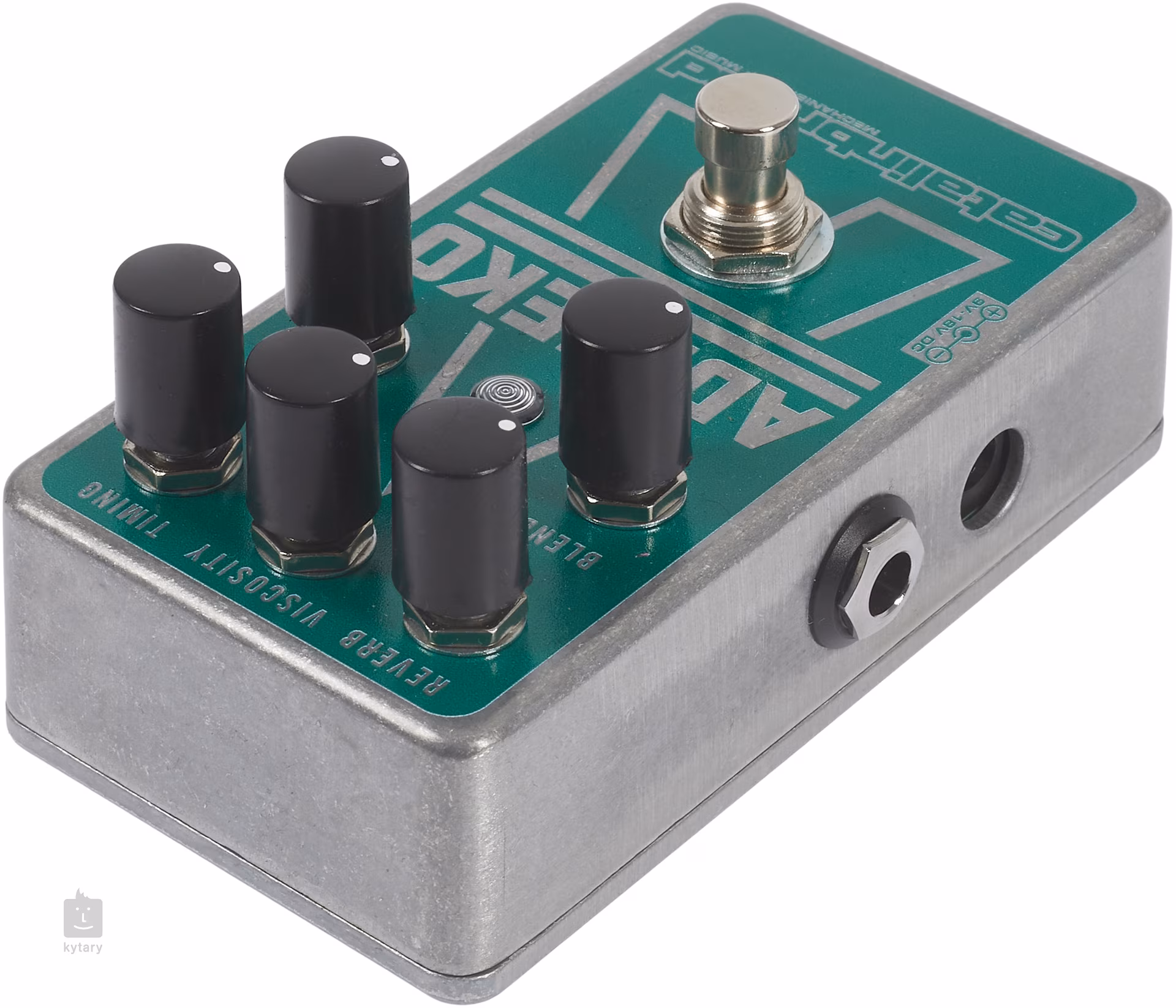 Der Catalinbread ADINEKO Pedaleffekt emuliert die alten Ölkannen-Verzögerungsgeräte von Tel-Ray/Morley. Dank der Kombination von dunkel klingenden Echos mit Vibrato-Modulation und dem Delay-Effekt (maximale Verzögerungszeit 1000 ms) erzeugen Sie wahrhaft mysteriöse, erschütternde Sounds und Klanglandschaften, wie man sie zum Beispiel aus alten italienischen Western kennt. Die gesamte Elektronik des Pedals ist in einem soliden Metallgehäuse untergebracht. Das Catalinbread ADINEKO ist als True-Bypass verdrahtet. Für die Stromversorgung wird ein 9-18V Adapter benötigt.