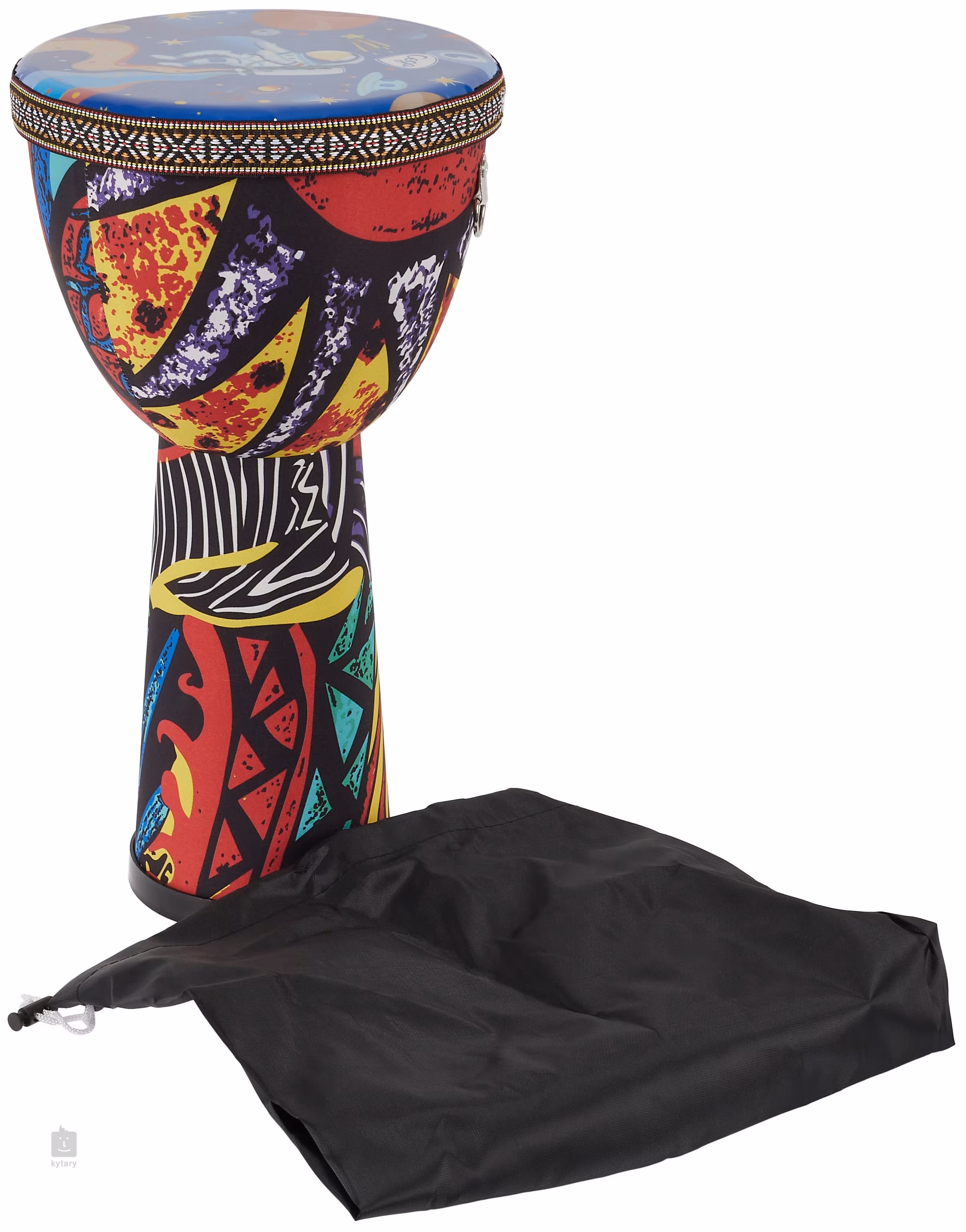 Diese Djembe eignet sich besonders für Kinder und Anfänger. Sie besteht aus robustem ABS-Kunststoff, der in Verbindung mit einem synthetischen Fell nicht nur hervorragende Klangeigenschaften bietet, sondern auch maximale Widerstandsfähigkeit gegen mechanische Beschädigungen und Witterungseinflüsse. So müssen Sie sich auch auf Reisen oder beim Spielen im Freien keine Sorgen um Beschädigungen oder Verstimmungen machen. Im Lieferumfang enthalten ist auch eine Transporttasche, die dank der Schultergurte wie ein Rucksack getragen werden kann, sowie ein Gurt für komfortables Spielen im Stehen.