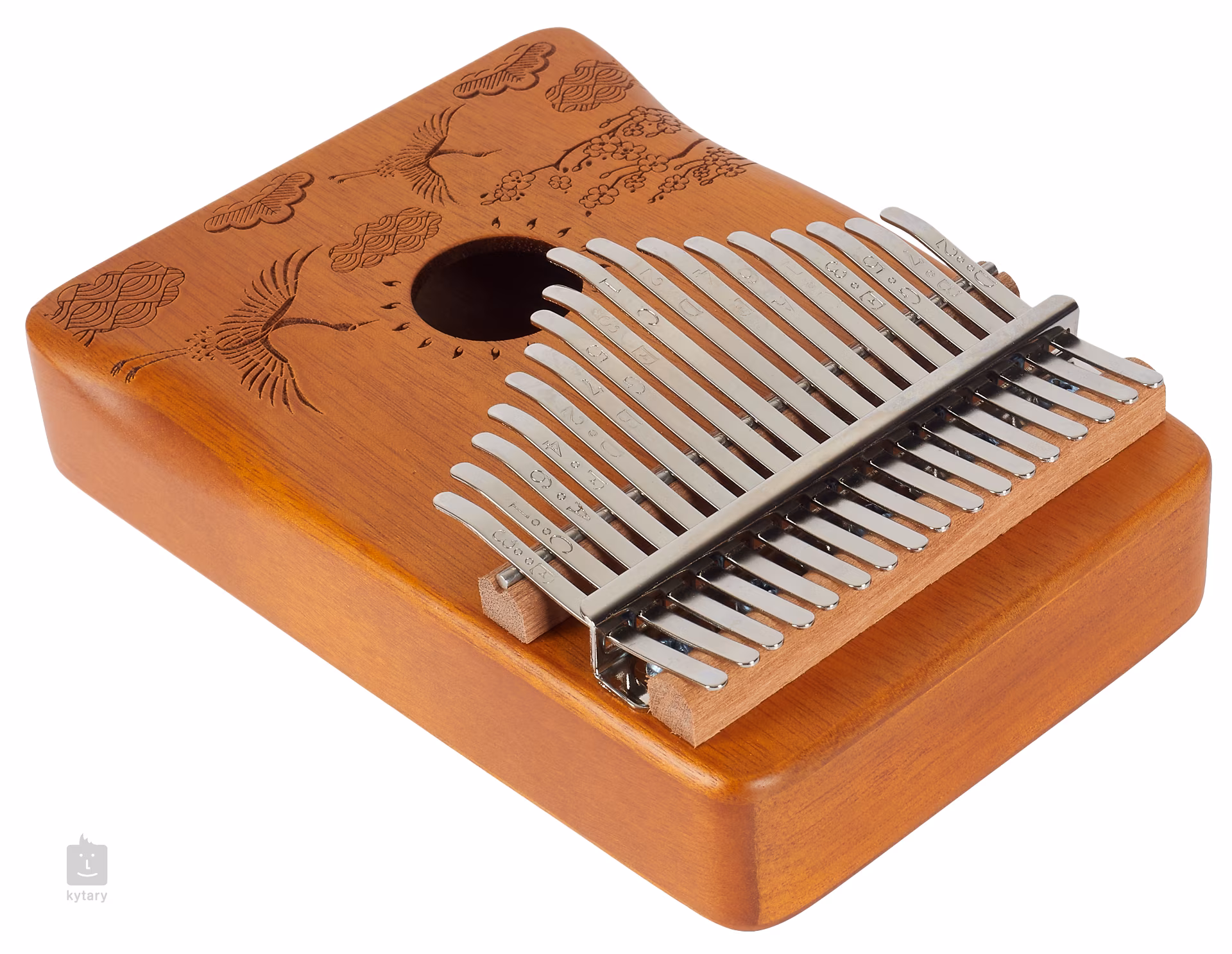 Die Kalimba ist ein einzigartiges melodisches Instrument, das Ihrer Produktion oder Ihrem Live-Auftritt ein unverwechselbares Element verleiht. Es kann zur Begleitung oder zum Solospiel verwendet werden. Kalimbas von Cega werden aus hochwertigen, natürlich getrockneten Hölzern hergestellt, die ihnen hervorragende Klangeigenschaften und maximale Stabilität verleihen. Dieses Modell ist aus Ahornholz gefertigt und mit einem lasergeschnittenen Muster verziert. Die Klappen aus Kohlenstoffstahl verleihen dem Instrument einen klaren und lauten, aber dennoch angenehm warmen Klang, der bei diesem Modell durch das Schallloch noch verstärkt wird. Die Tasten sind außerdem mit eingravierten Noten versehen, die vor allem neuen Spielern die Orientierung erleichtern sollen.