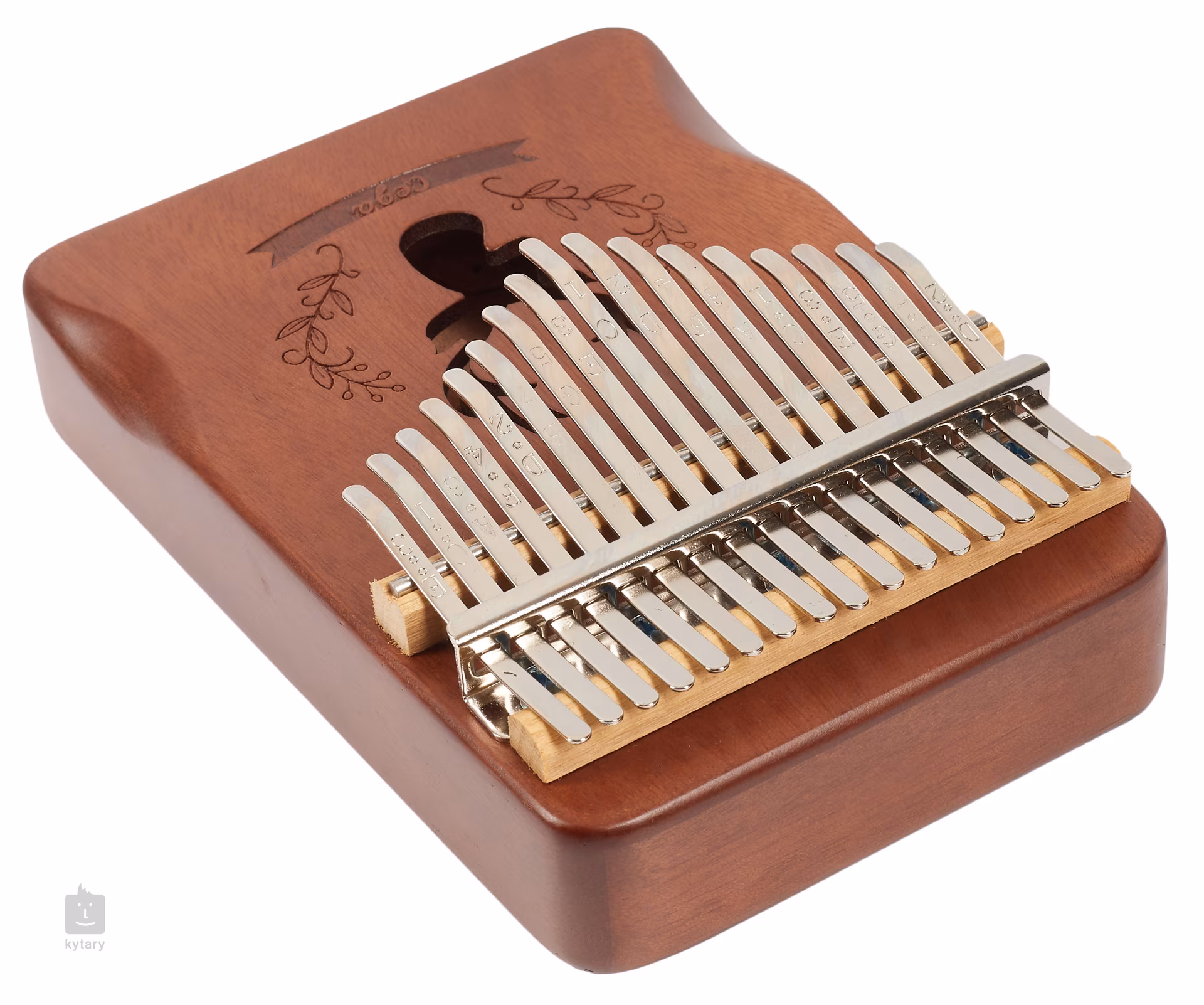 Die Kalimba ist ein einzigartiges melodisches Instrument, das Ihrer Produktion oder Ihrem Live-Auftritt ein unverwechselbares Element verleiht. Es kann zur Begleitung oder zum Solospiel verwendet werden. Kalimbas von Cega werden aus hochwertigen, natürlich getrockneten Hölzern hergestellt, die ihnen hervorragende Klangeigenschaften und maximale Stabilität verleihen. Dieses Modell ist aus Mahagoni gefertigt und mit einem lasergeschnittenen Muster verziert. Die Klappen aus Kohlenstoffstahl verleihen dem Instrument einen klaren und lauten, aber dennoch angenehm warmen Klang, der bei diesem Modell durch das Schallloch noch verstärkt wird. Die Tasten sind außerdem mit eingravierten Noten versehen, was vor allem neuen Spielern die Orientierung erleichtern soll.